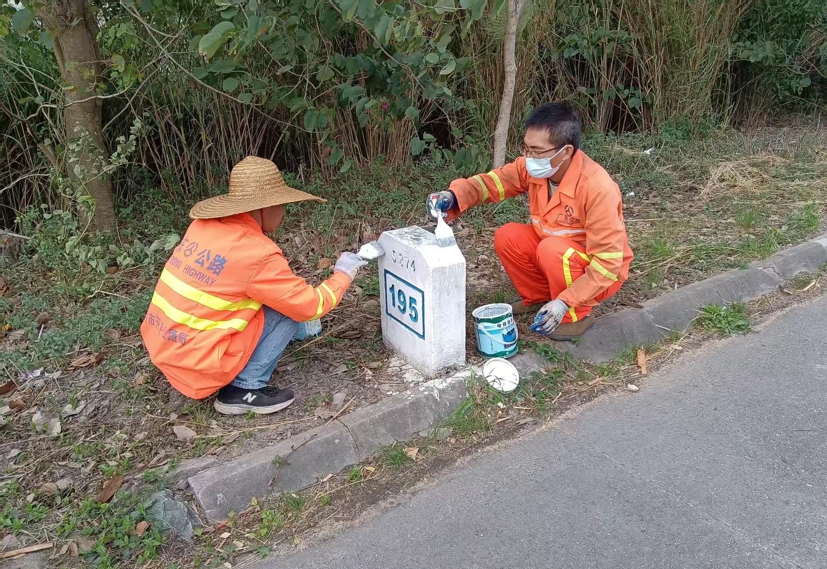 加强设施维护,为公路“增保障”。对公路沿线交通标牌、里程碑、百米桩等设施全面摸排,建立问题底册,分类实施整改。修剪遮挡标牌路树、刷新里程碑及示警墩,10月至今,共完成126处标识标牌的修复、清洁及扶正工作,保障标牌指示清晰准确、交安设施明亮。