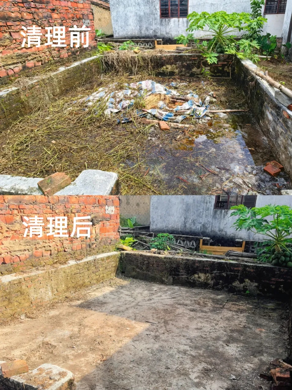 前期,对村内房屋及蚊虫孳生地开展了全面摸底登记,在取得村民同意的前提下,对排查出的40间危破房进行了集中清拆。清拆过程实施分类整治,对开阔村面使用大型铲车对垃圾杂物进行集中清运;较宽巷道由施工人员操作小型挖掘机对危房进行拆除;机械无法进入的狭窄区域,则安排人工细致清理,确保不留任何卫生死角。