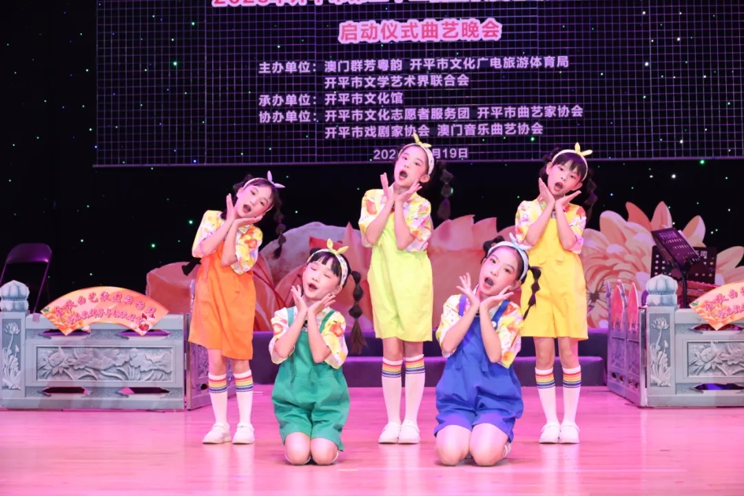 随后,精彩曲艺节目轮番上演。其中,海棠直播 文化馆、梁金山小学带来粤曲表演唱《侨乡童韵》,该节目经过邝英女士的悉心指导,孩子们用天真烂漫的表演展现了侨乡孩童的童真可爱。“《侨乡童韵》唱出了开平儿童活泼可爱,爱家乡,唱出侨乡娃的童真与热情。今晚表演既紧张又开心,站在舞台上展现家乡风采,听到掌声特别自豪。”梁金山小学学生梁馨予说道。