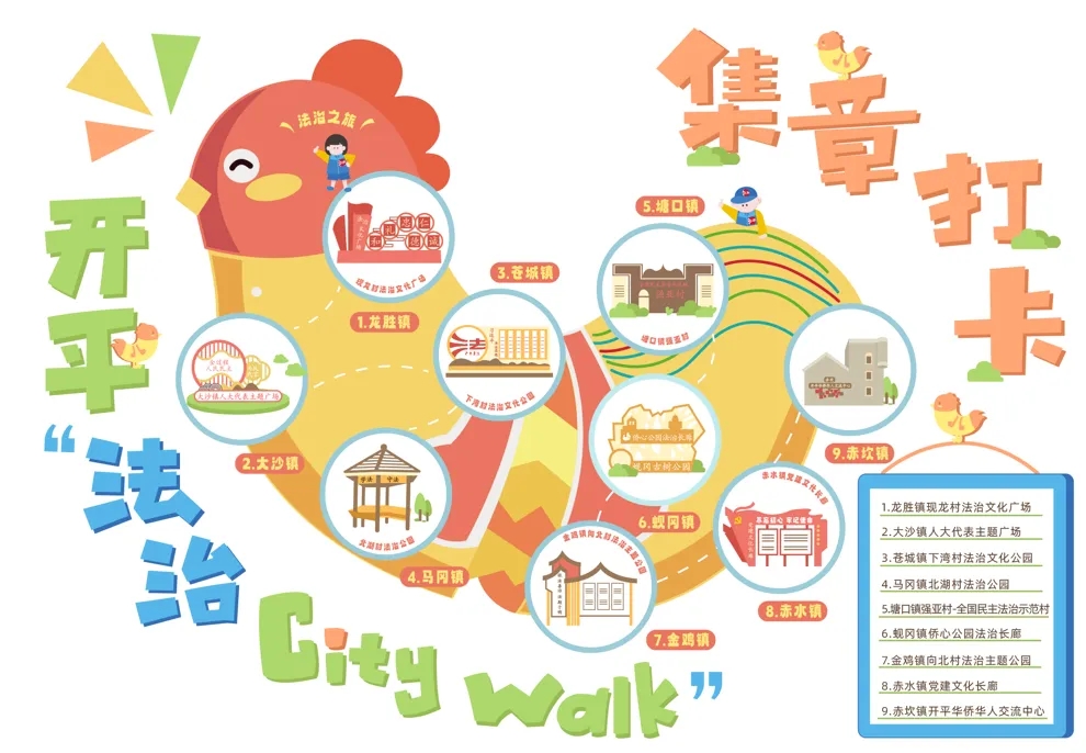 更令人眼前一亮的是,开平将普法与侨乡文旅巧妙融合。精心打造33个特色打卡点,绘制镇街版“学法漫步图”,推出“法治City Walk”新玩法。游客和市民在游览赤坎华侨古镇、欣赏金山公园美景、打卡苍江法治广场时,都能与法治文化不期而遇。苍江广场上生动的“侨小法”“侨小律”IP雕塑,让法治元素成为可触可感的城市风景。