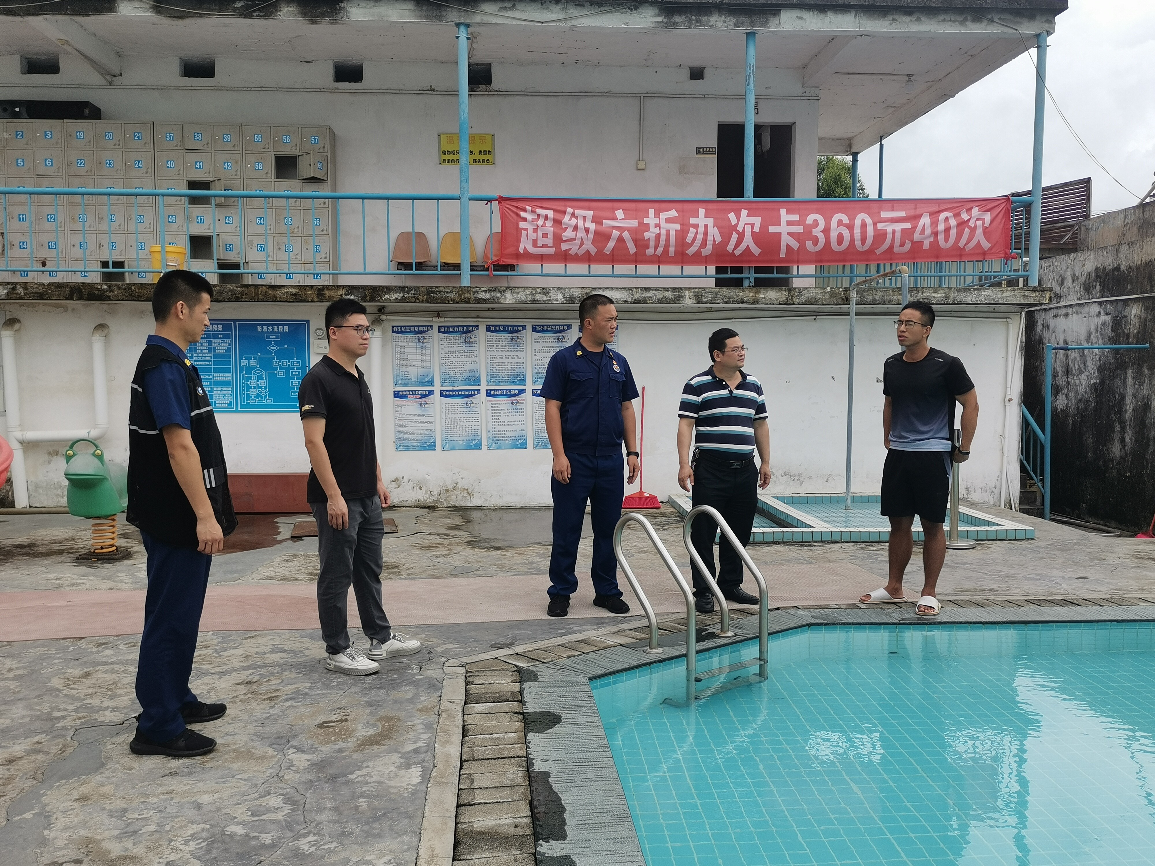 暑假即将到来,随着夏季气温不断升高,游泳将成为广大群众首选的消暑运动,游泳场所是否安全也成为广大群众的关注热点。为营造安全的游泳环境,切实保障广大群众的生命安全,督促经营性游泳场所规范经营,防止游泳安全事故发生,近日,月山镇副镇长祝祥泰组织镇公共服务中心、应急管理办、专职消防队,对我镇经营性游泳场所开展安全专项检查。