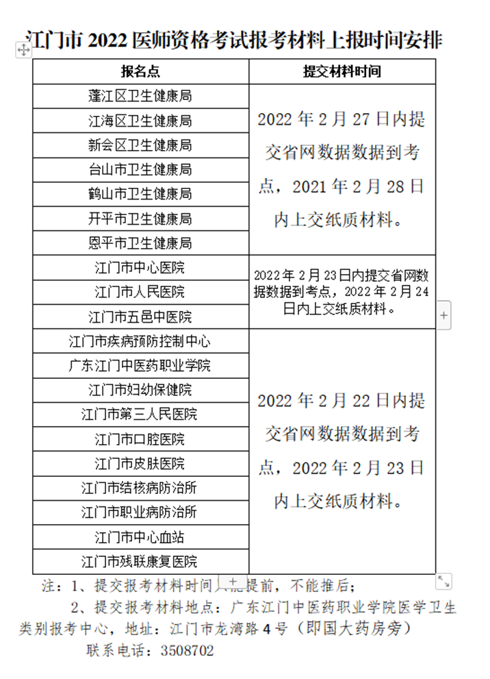 问:江门市2022医师资格考试报考材料上报时间安排?