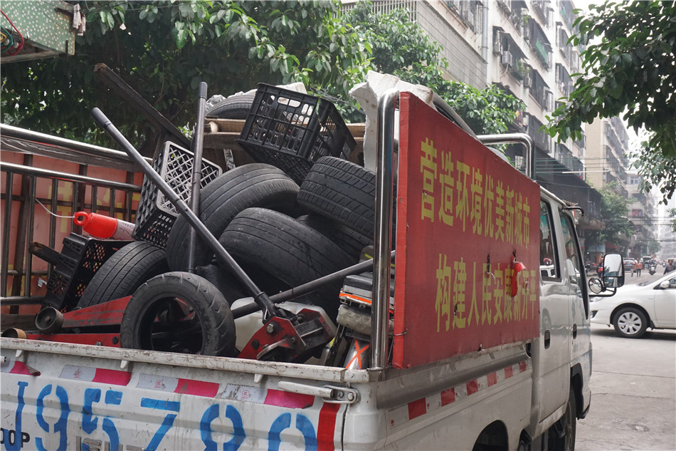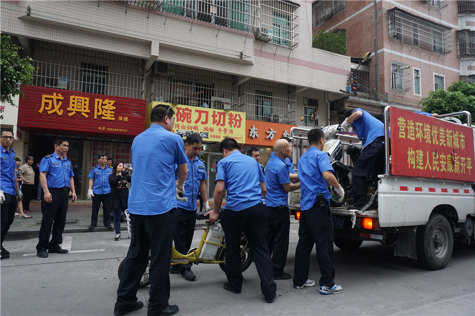 在整治行动中发现,一些商家为了一己之私,利用隔离锥、大石头、废旧铁桶、废旧凳子、废旧轮胎等杂物或者电动车、自行车、摩托车等障碍物,长期占用公共停车位。这种把公共停车位占为己用的行为,不仅占用了停车资源,而且造成了停车秩序混乱,给市民的停车带来不便。同时这些物品摆放在道路上也影响了市容市貌和环境卫生。根据《中华人民共和国道路交通安全法》和城市管理相关规定,联合执法队对这些占用公共停车位的物品当场进行清理和收缴,对乱停乱放的摩托车开出了处罚单。