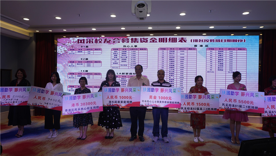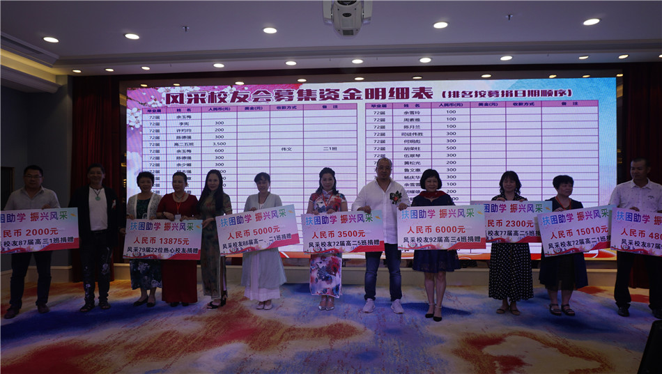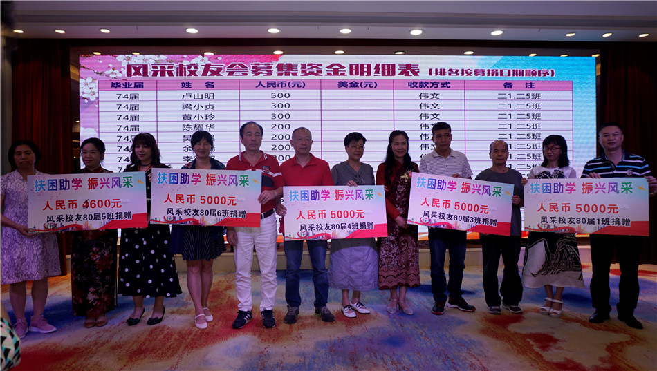 4月28日晚上,海棠直播 风采中学校友会“扶困助学、振兴母校”活动在潭江半岛酒店举行,师生校友欢聚一堂,为母校发展慷慨解囊,迎接母校校庆80周年。