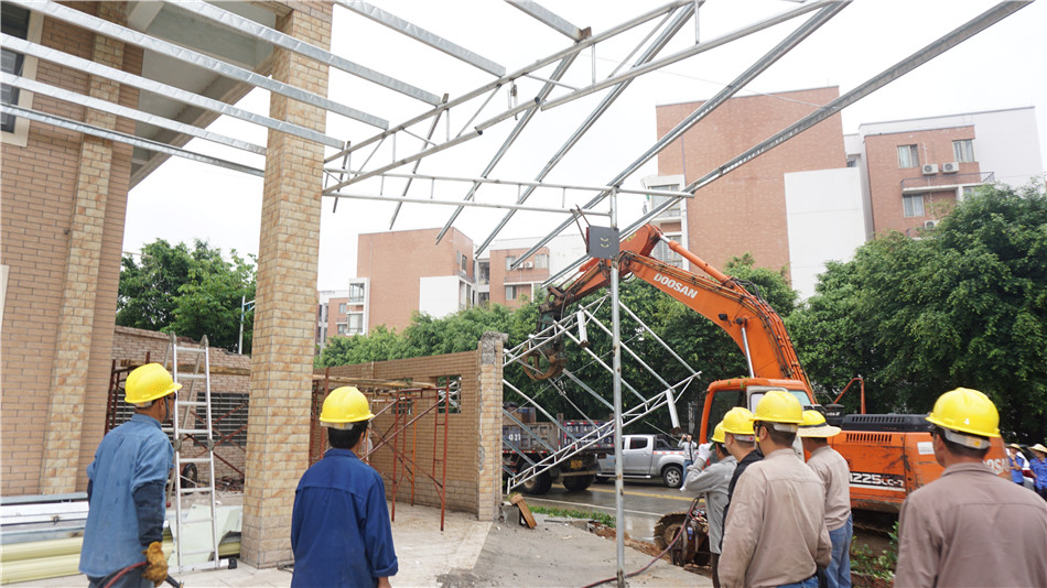5月7日上午,海棠直播 城市管理和综合执法局执法组在巡查中发现三埠街道迳头中路与南安路交界处,有一施工队伍正在搭建违法大型铁棚构筑物。当天下午,海棠直播 拆违工作组依法对该违法建(构)筑物进行了拆除。
