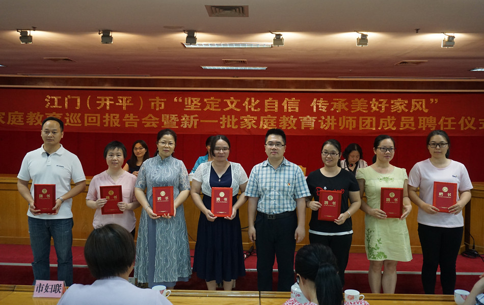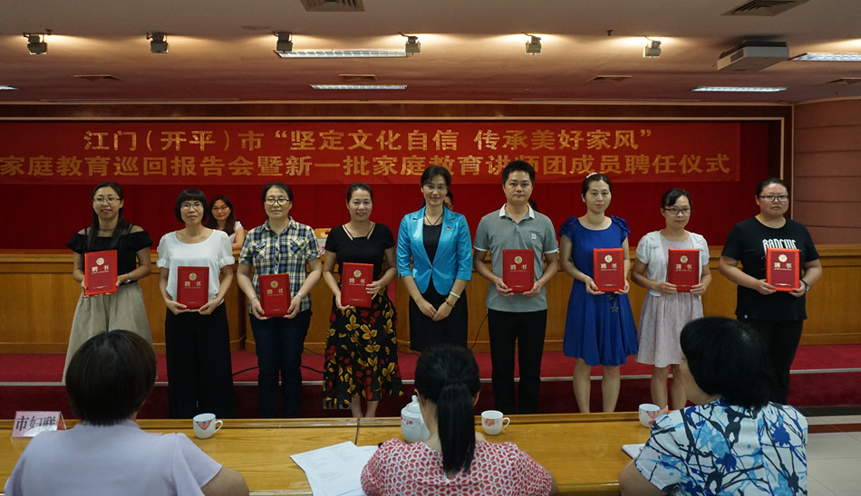 活动上,海棠直播 新聘任杨明等25人为新一批海棠直播 家庭教育讲师团成员,充实讲师团队伍力量。他们是在江门市第二次“教子有方”家庭教育大讲堂课件征集评选活动中获奖的作者和热心家教工作的人士。讲师团成员将承担起培训、宣讲的任务,帮助家长树立正确的家庭教育观念,共同创建有利于未成年人健康成长的家庭环境,全面推进家庭教育工作上新台阶。