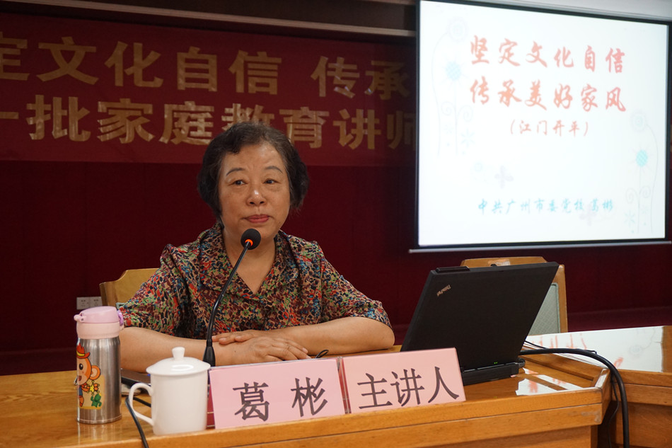 巡回报告会邀请了广州市委党校教授葛彬作主题宣讲。葛彬教授以“坚定文化自信,传承美好家风”为主题,用通俗幽默的语言和交流互动的方式,从治国理政与家风、立德树人与家教,文化自信与家和三个方面阐述了家国相连,家风影响民风,连着政风,关系党风的联系。