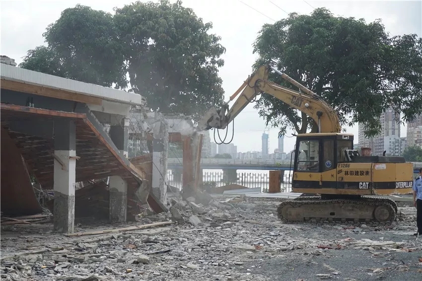 这次清拆的是宝堤东路维港酒店旁违章建造的餐饮场所,该场所已私自占用该地块多年。据市城监执法队员介绍,此前在对餐饮场所的经营者下达清拆通知后,其已停止营业并自行拆除了部分设施,而剩余残留建筑则由城监部门组织拆违力量进行后续清拆。