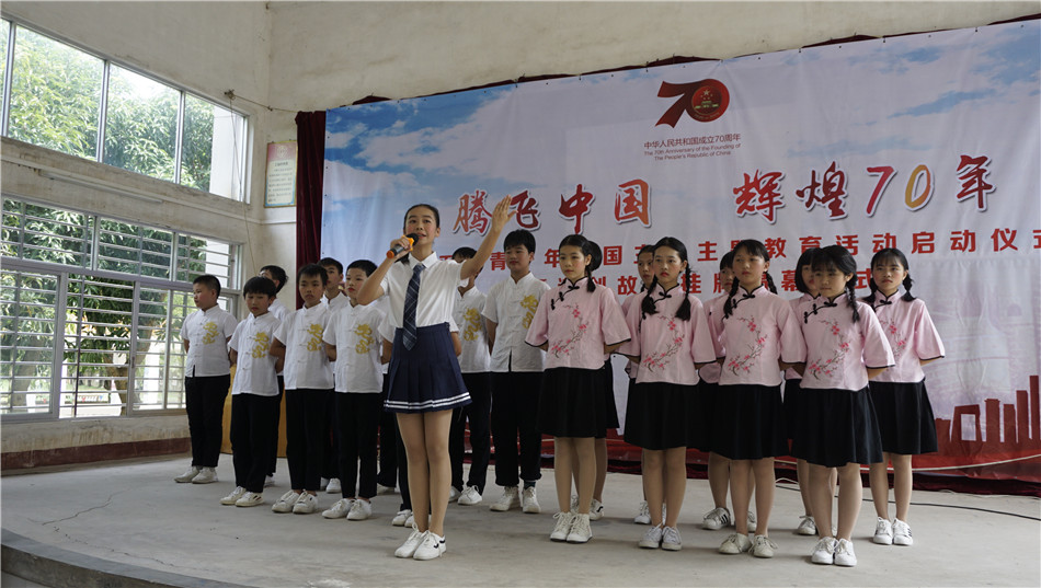 在启动仪式上,塘口镇关工委以革命前辈谢创身边的故事为主题,向学生讲述红色革命故事,学生则以朗诵和合唱等表演形式歌颂祖国,营造了浓厚的爱国主义教育宣传氛围。