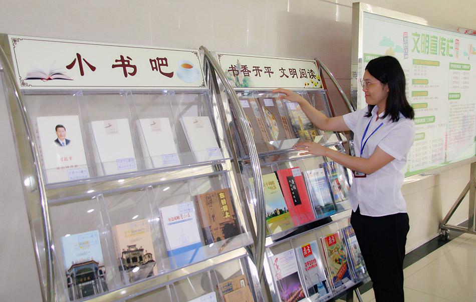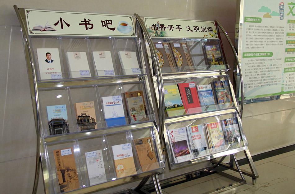 “‘小书吧’由专人管理,及时更新,贴近实际。‘书吧’虽小,但时政类、礼仪类、创文宣传、开平碉楼与村落等内容的书刊杂志一应俱全。”市政务服务数据管理局办公室干部罗秀菊说:“行政服务中心办事大厅人流密集,‘小书吧’不仅可以成为我市‘创文’宣传的一个小小阵地,还能在办证高峰期分流排队等候的部分市民,有效缓解窗口的压力,受到群众点赞。”