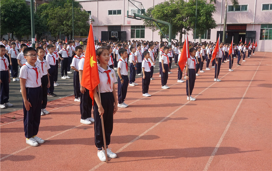 在指导员老师的带领下,戴上红领巾的少先队员重温了入队誓词,共同聆听辅导员老师的讲话。活动中,少先队员代表还用声情并茂的演讲,还分享了自己与国家、与国旗、与少先队的故事。