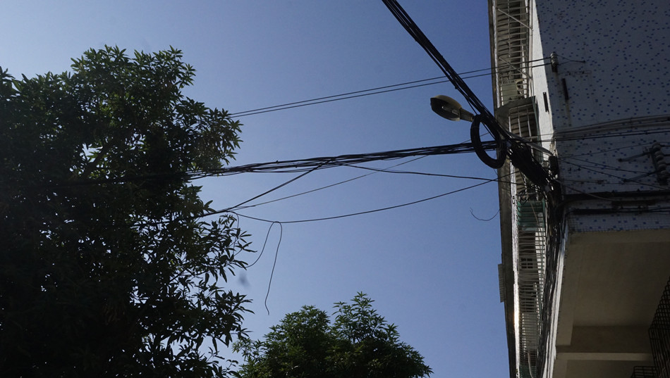 城市半空中的电力线、电话线、有线电视线等“三线”像“蜘蛛网”一样,不仅影响采光和市容市貌,还存在极大的安全隐患,甚至为偷电、偷网、私拉私接者提供了便利条件。