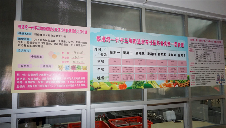 根据居民居家养老的实际生活需要,市民政局、三埠街道依托东华居家养老服务中心,成功设立悦港湾新安社区长者食堂项目,实现助餐服务与居家养老服务的有机融合,把长者食堂打造成拓展居家养老服务的重要阵地,让长者在吃上可口饭菜的同时,更好地满足他们的多元化养老需求。