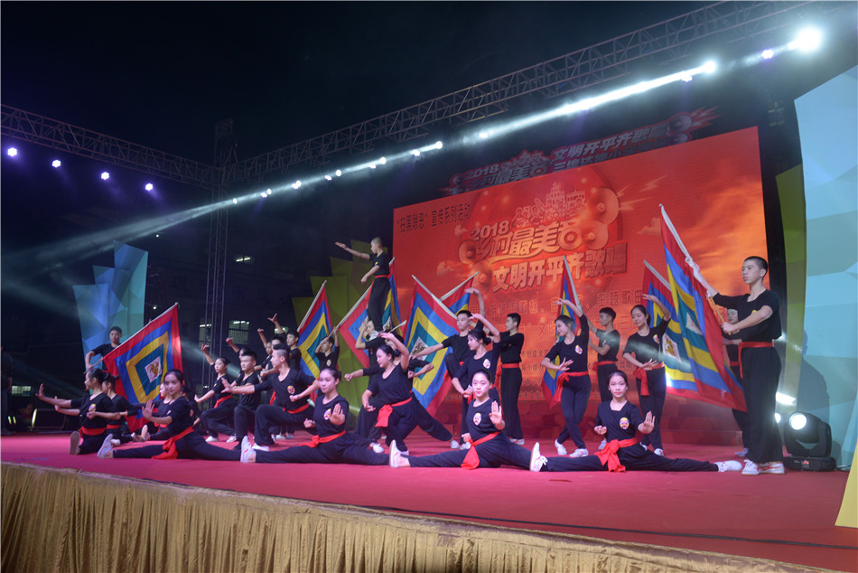 晚会的后半部分,举行了民歌专场演出,以粤剧表演、大合唱、舞蹈等丰富多样的表演形式,展现了我市创文和扫黑除恶专项斗争开展以来所取得的成果,同时,进一步挖掘和展现我市民间文化资源,促进省级非遗项目开平民歌的保护、传承与发展,推进我市乡土文化进校园活动,展示我市开平民歌近年来的普及成果。