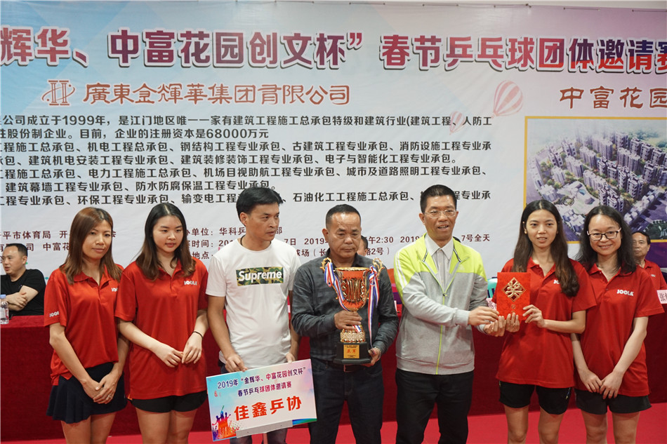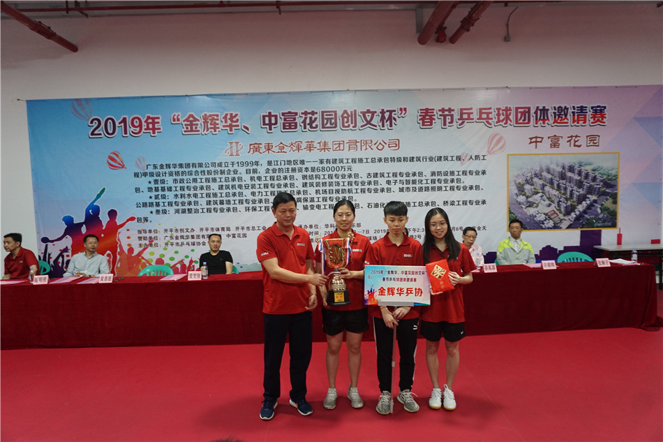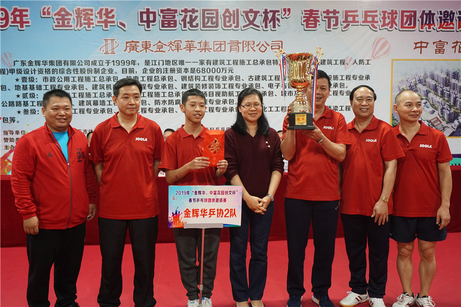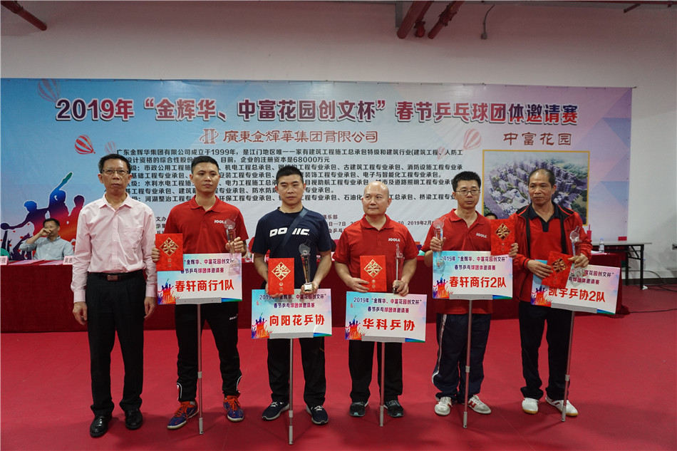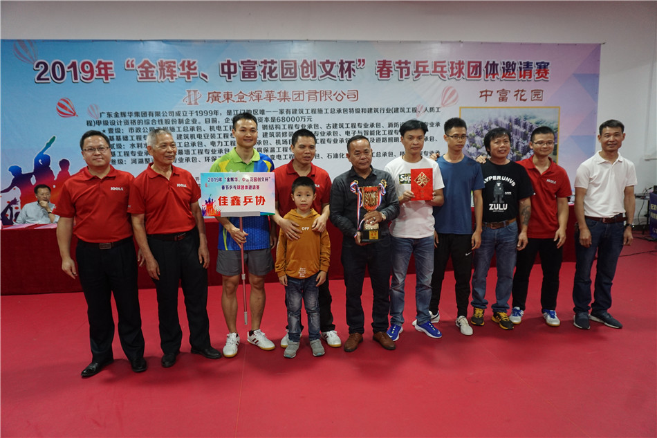 2月7日下午,2019年“金辉华、中富花园创文杯”春节乒乓球团体邀请赛经过3天的激烈比赛,在市总工会乒乓球馆圆满结束,男、女团体冠军均被金辉华队囊括。海棠直播 领导黄力奔、郑永钦到场观看了比赛,并为冠军队颁奖。