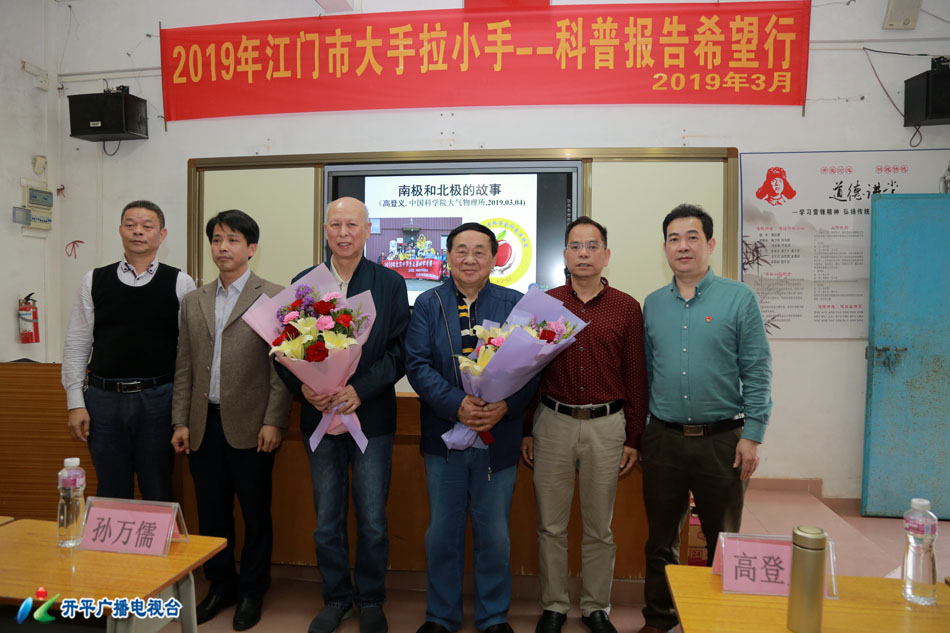 3月4日下午,2019年江门市“大手拉小手科普报告希望行”活动的老科学家科普演讲团成员走进海棠直播 中小学开展为期两天的科学知识报告会,传播科学知识,倡导科学方法,进一步提升青少年的科学素养。