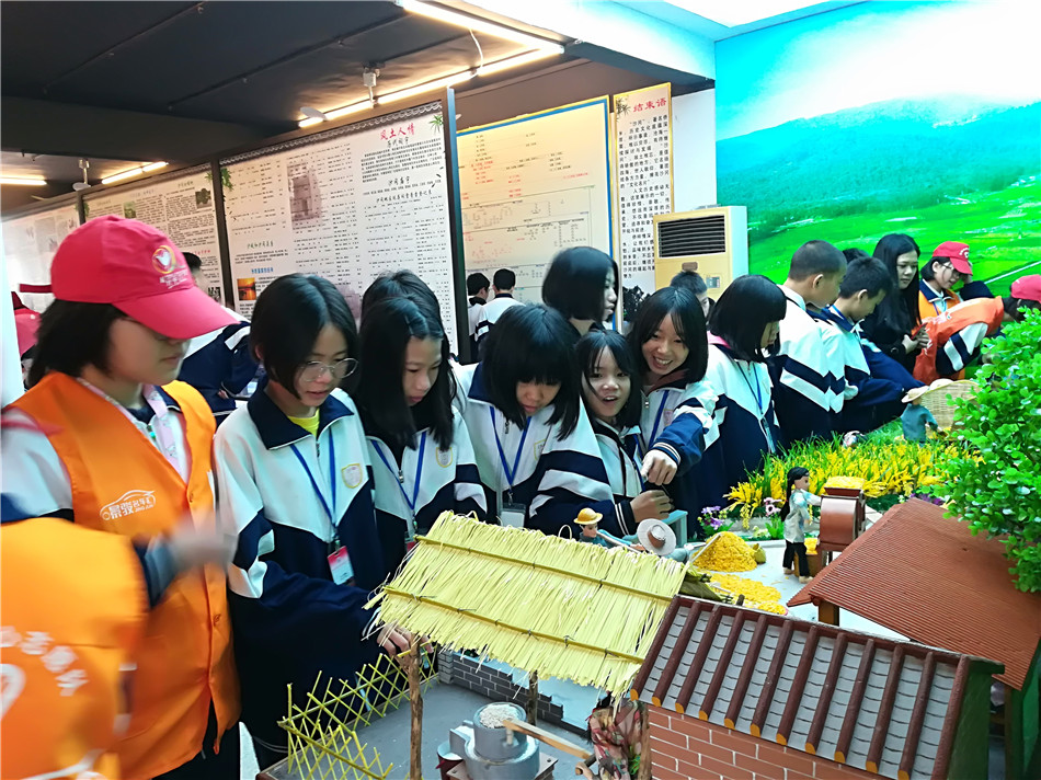 古老的大钟,珍贵的华侨文物,趣味十足的农耕文化发展的动态模型展示,一个个场景吸引着学生的目光,也激荡起他们对家乡的自豪感。