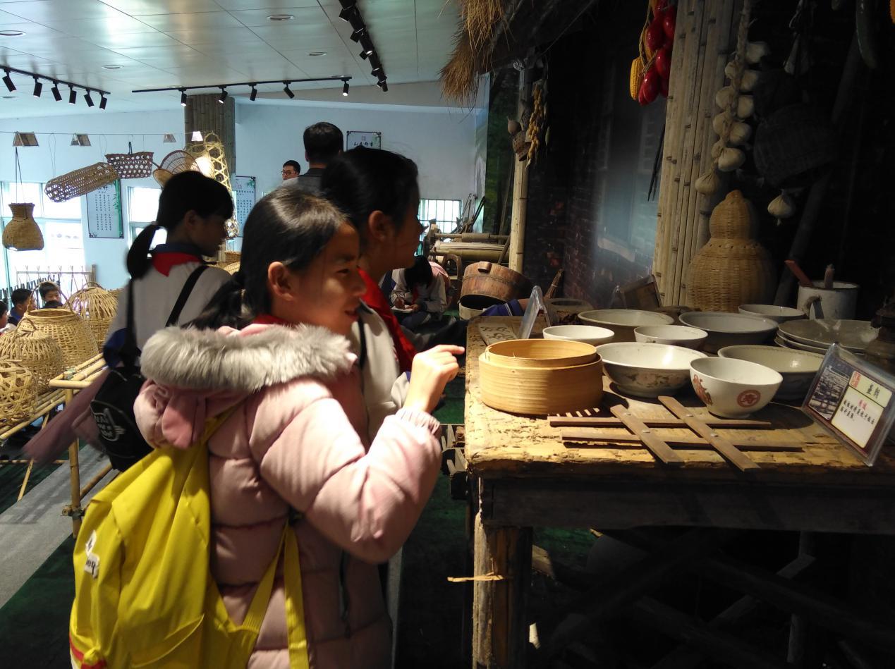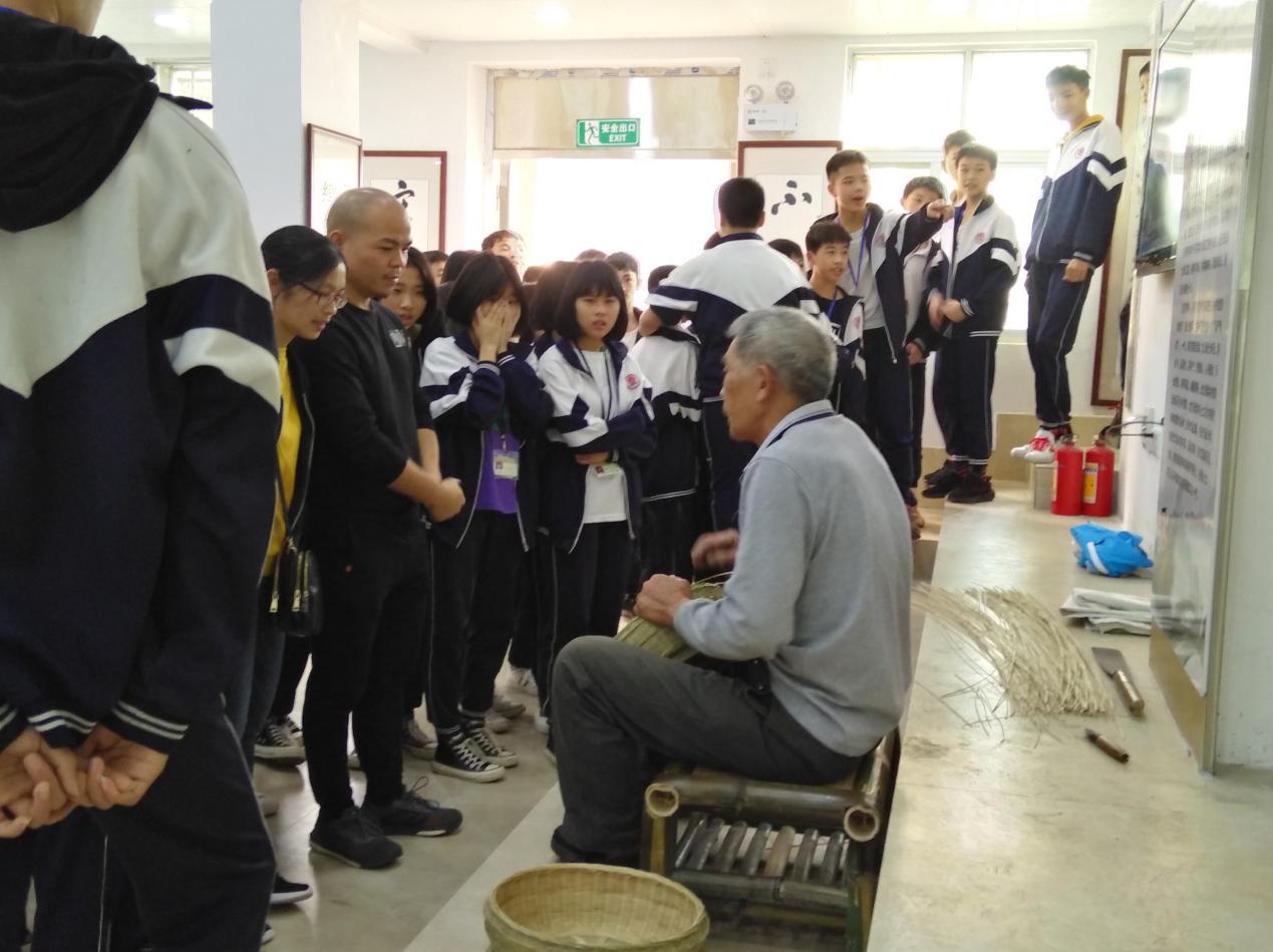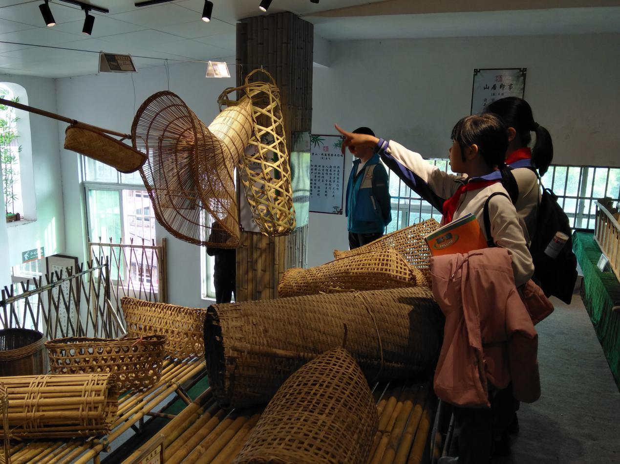 活动现场,学生们兴致勃勃地参观了馆内各类竹器和生活用品,马冈竹器手工艺人现场展示编织竹篮的技巧,引起了孩子们的高度兴趣。