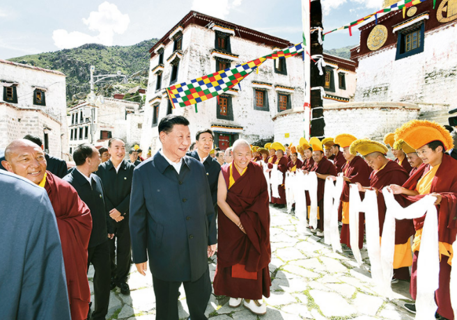 这是22日下午,习近平在位于拉萨西郊的哲蚌寺考察。新华社记者 谢环驰/摄