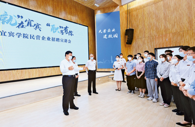 向正在参加企业招聘宣讲会的教师、学生、企业负责人了解企业招工需求和毕业生签约率等情况。新华社记者 李学仁/摄