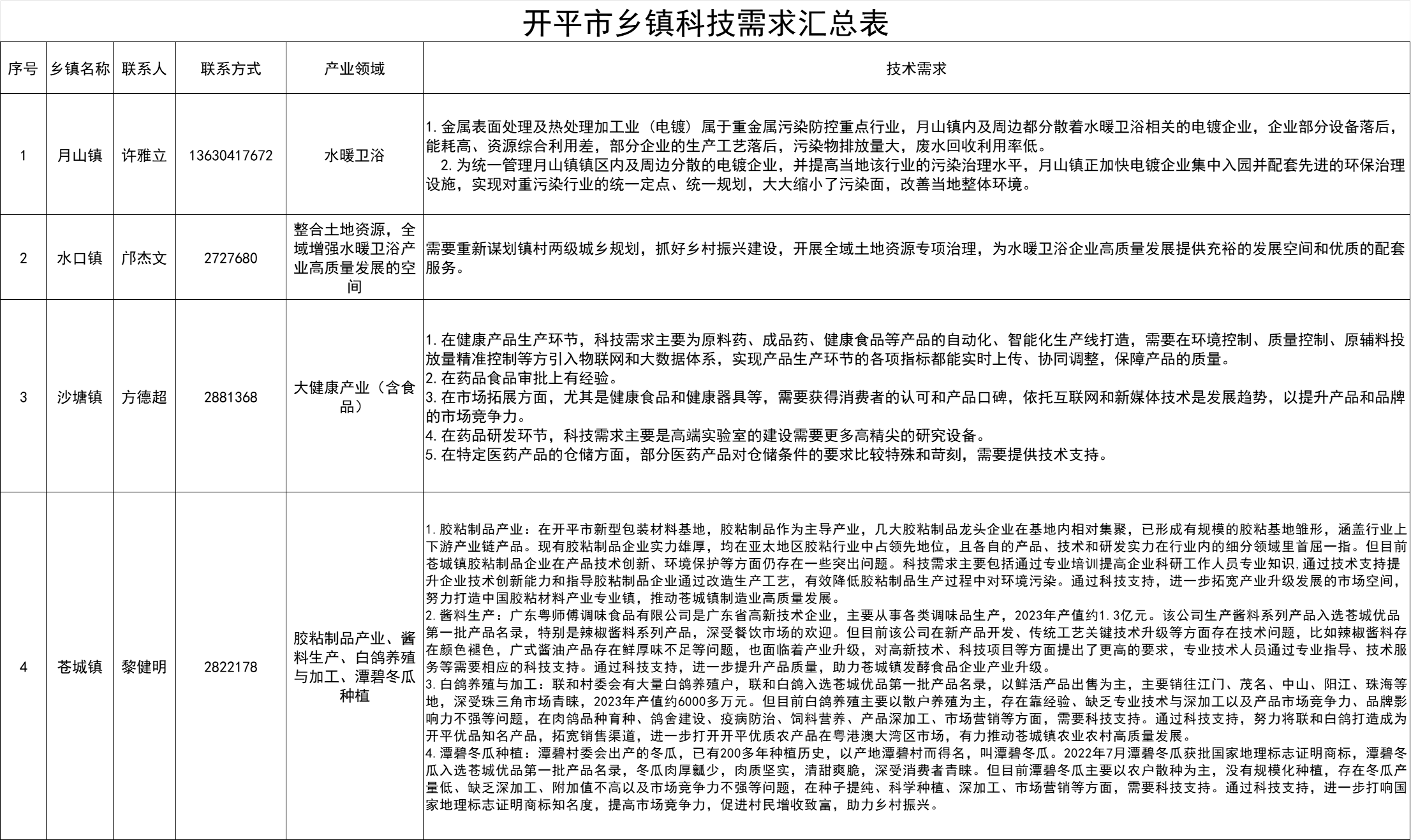 我市有关乡镇结合“百县千镇万村高质量发展工程”部门职责和任务分工,立足辖区产业特征和发展定位,认真梳理并重新报送了乡镇科技需求。我局现将各乡镇科技需求公布如下: