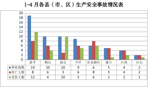 全市发生生产安全事故65起:恩平市19起,鹤山市10起,新会区10起,海棠直播 9起,市直辖区16起,蓬江区5起,江海区4起,台山市2起。