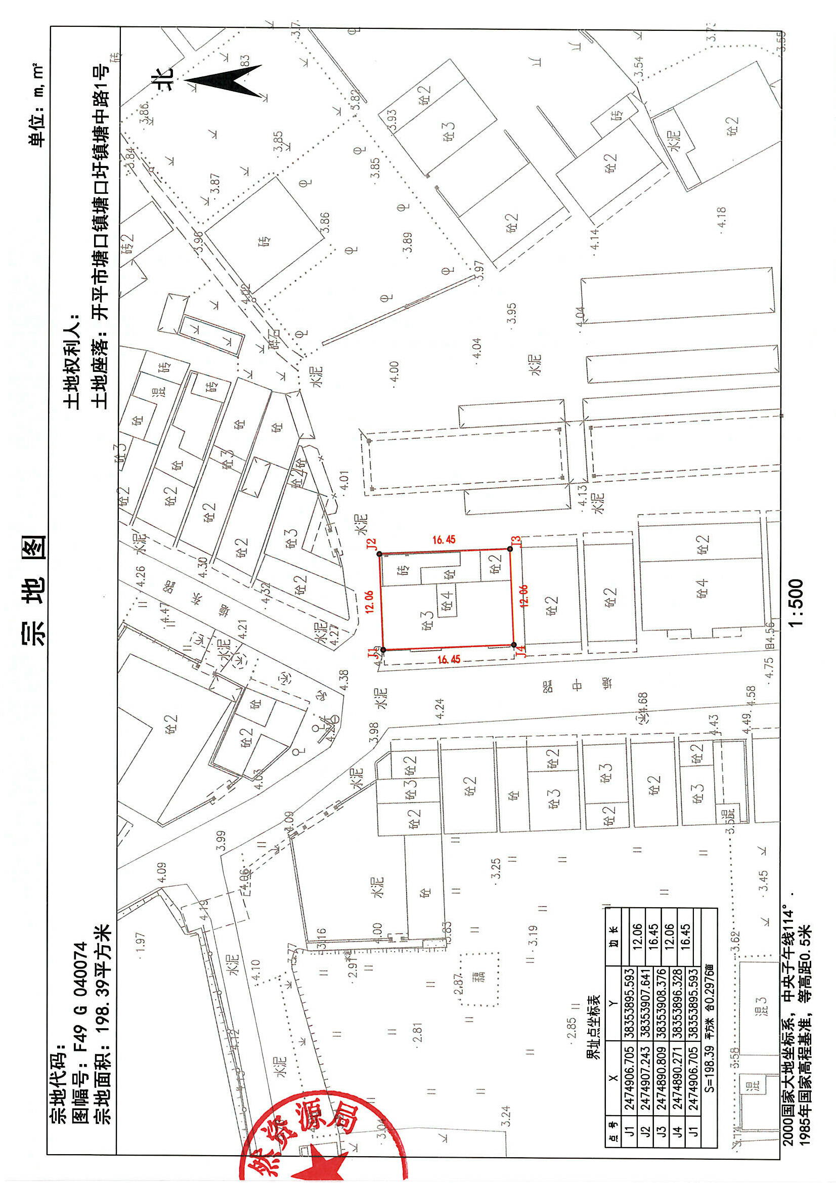 1992年办理土地登记,土地登记面积为 198.39 平方米(具体位置详见宗地图)。若有单位或个人对该宗不动产权属存在异议,请于公告发布之日起15个工作日内(2024年 3 月 22