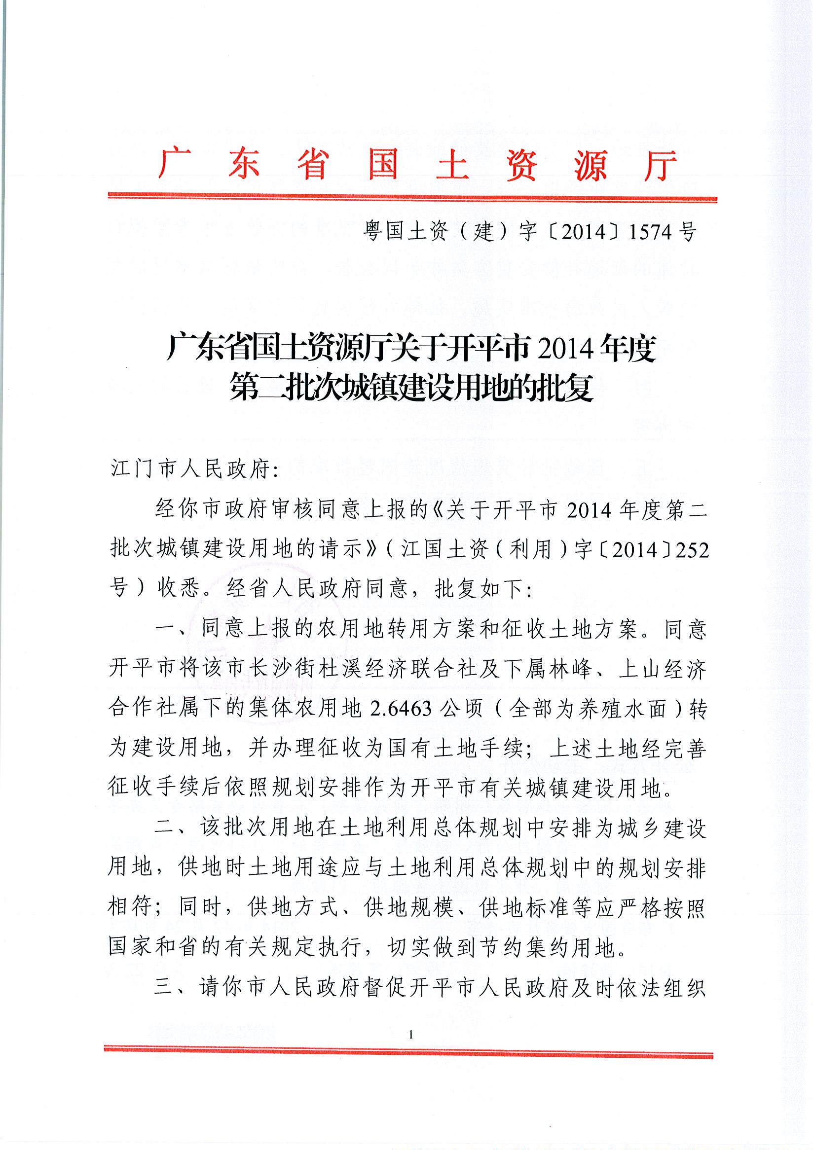 海棠直播 2014年度第二批次城镇建设用地的批复