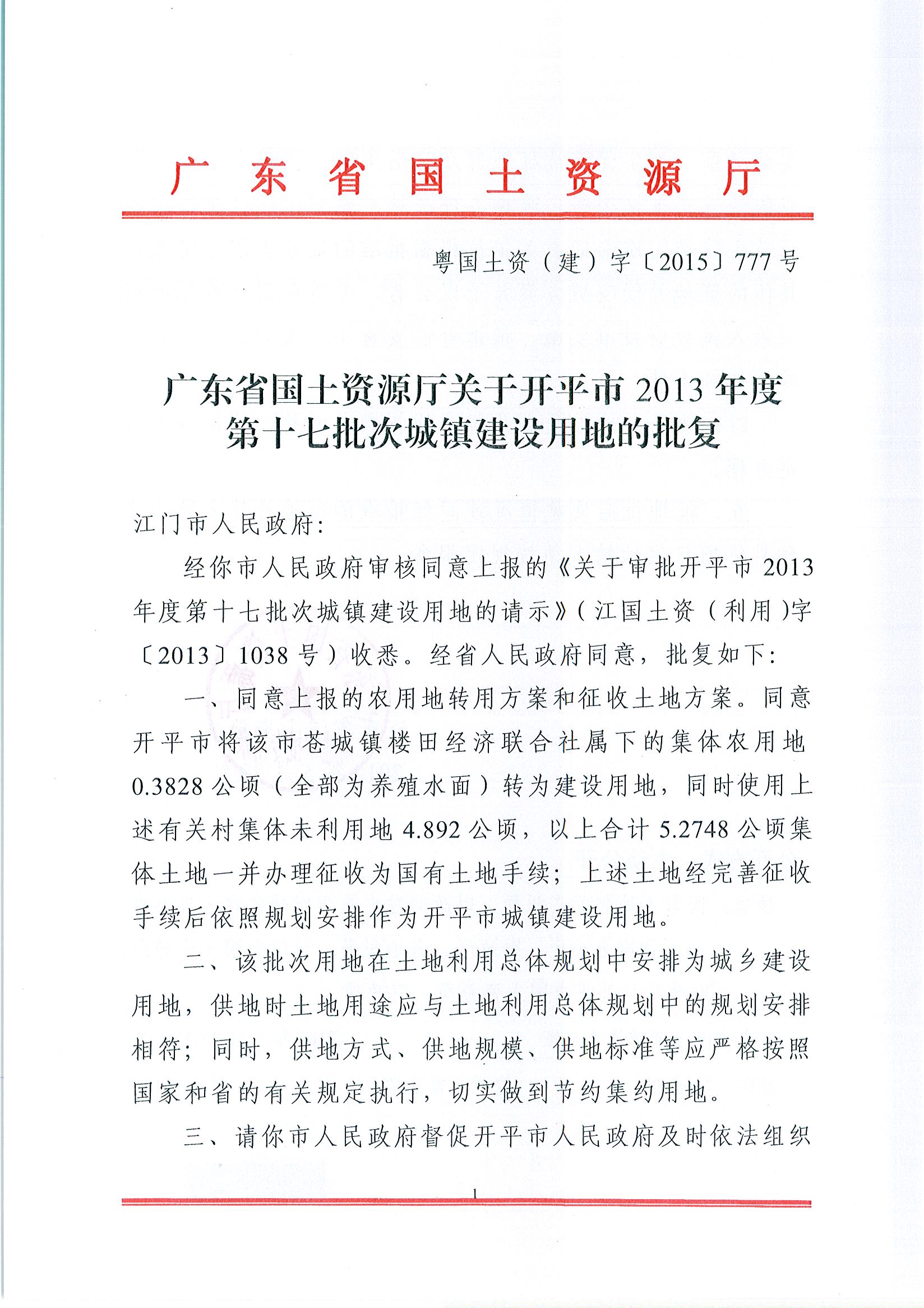 海棠直播 2013年度第十七批次城镇建设用地的批复