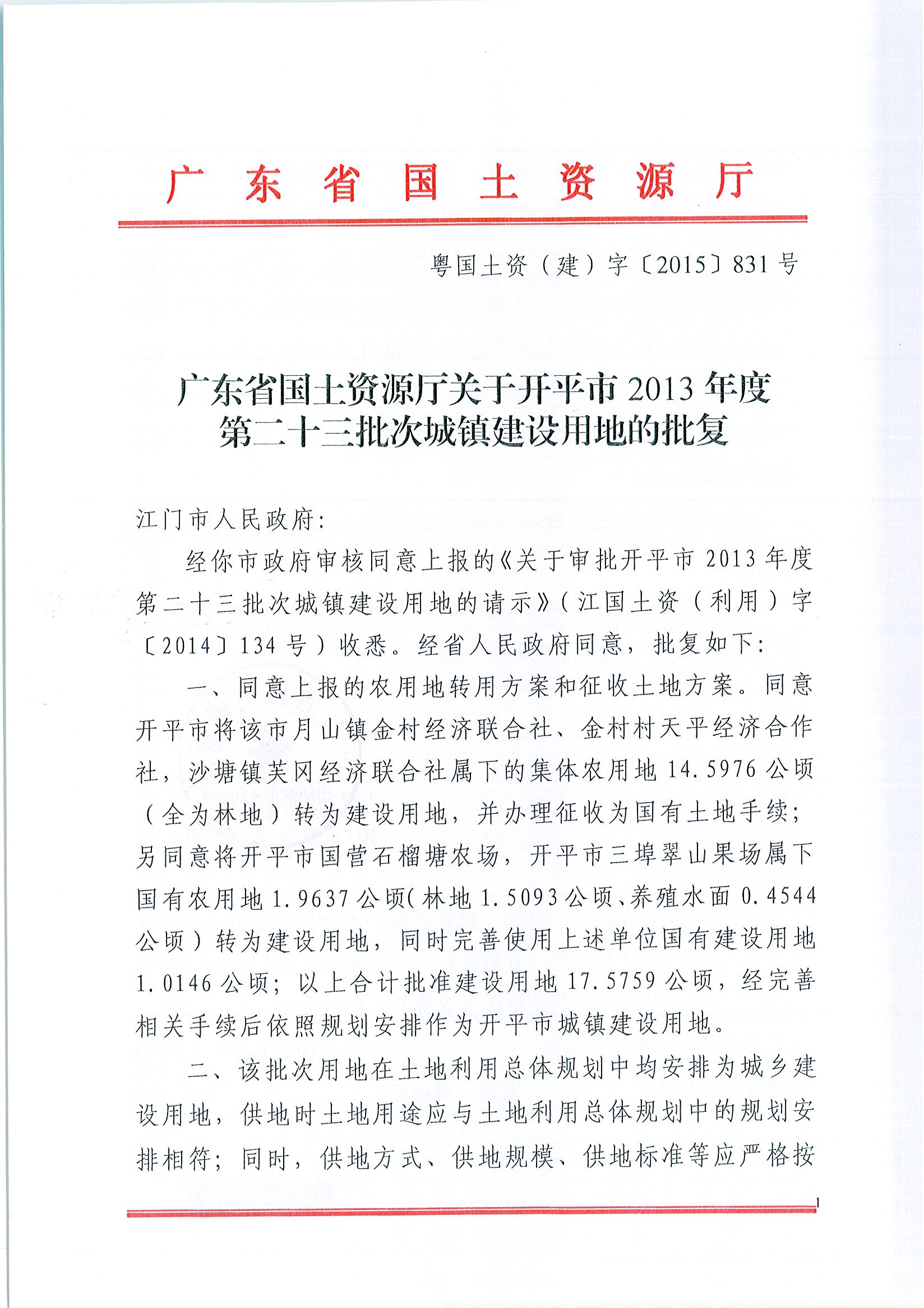 海棠直播 2013年度第二十三批次城镇建设用地的批复