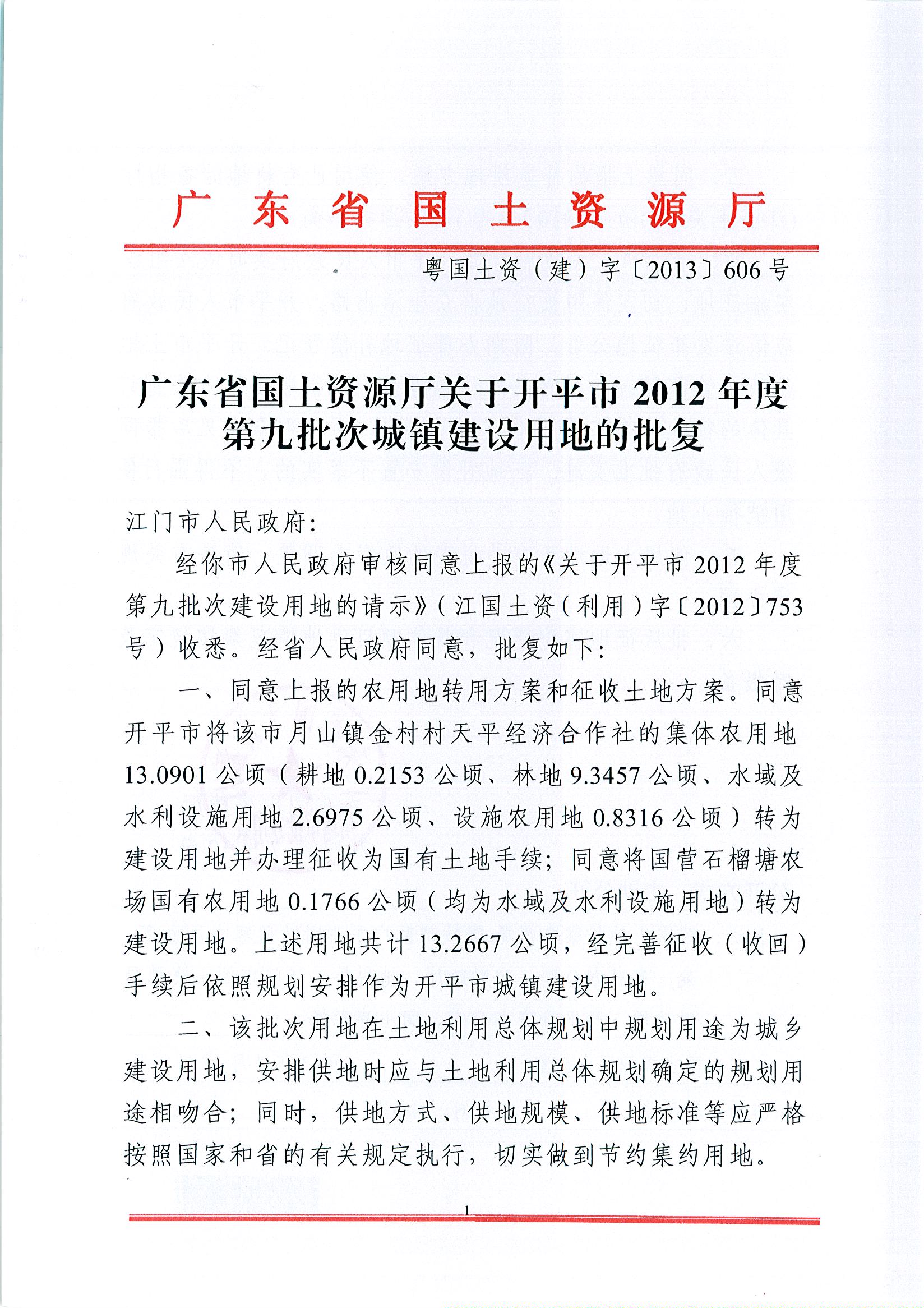 海棠直播 2012年度第九批次城镇建设用地的批复