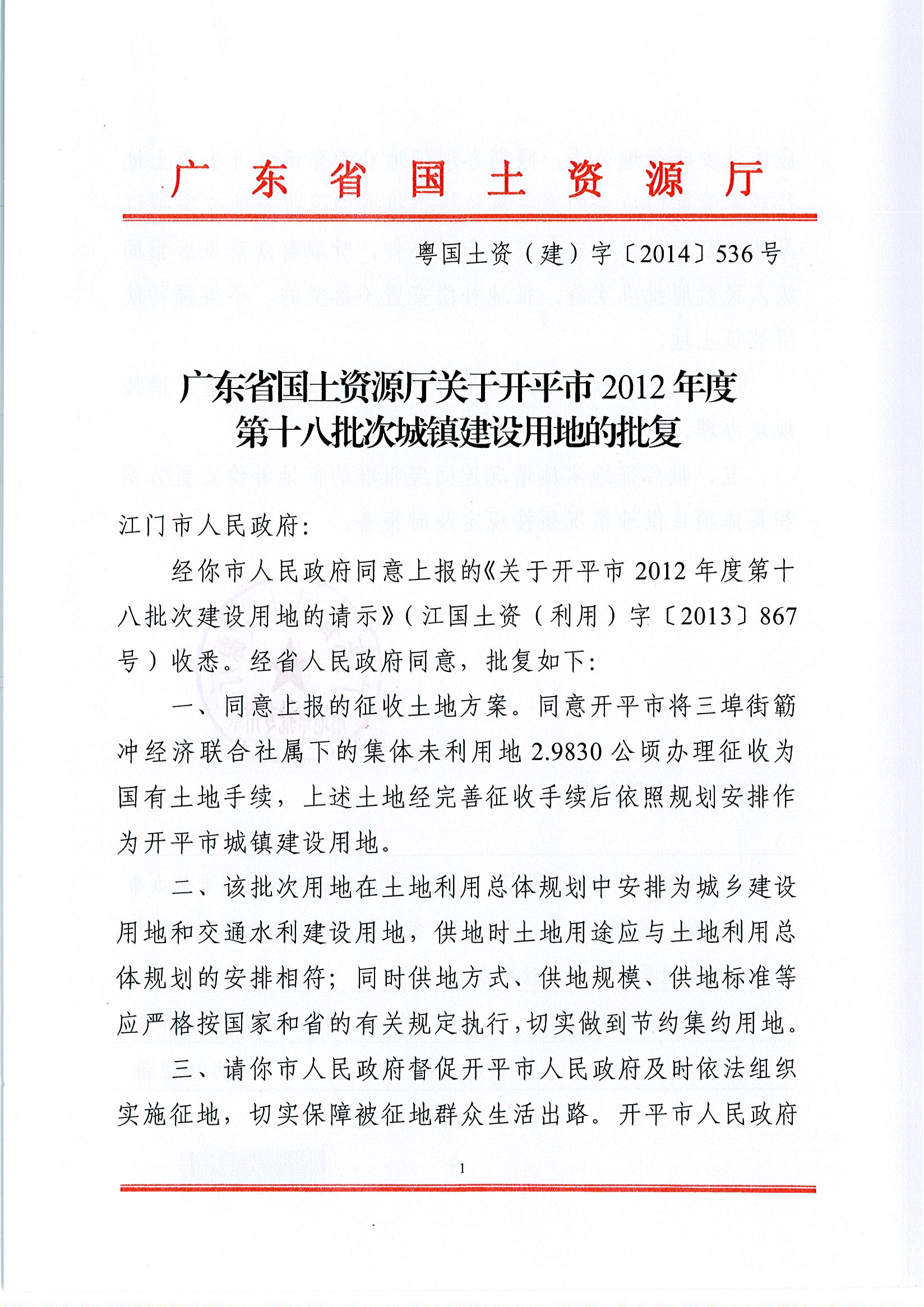海棠直播 2012年度第十八批次城镇建设用地的批复