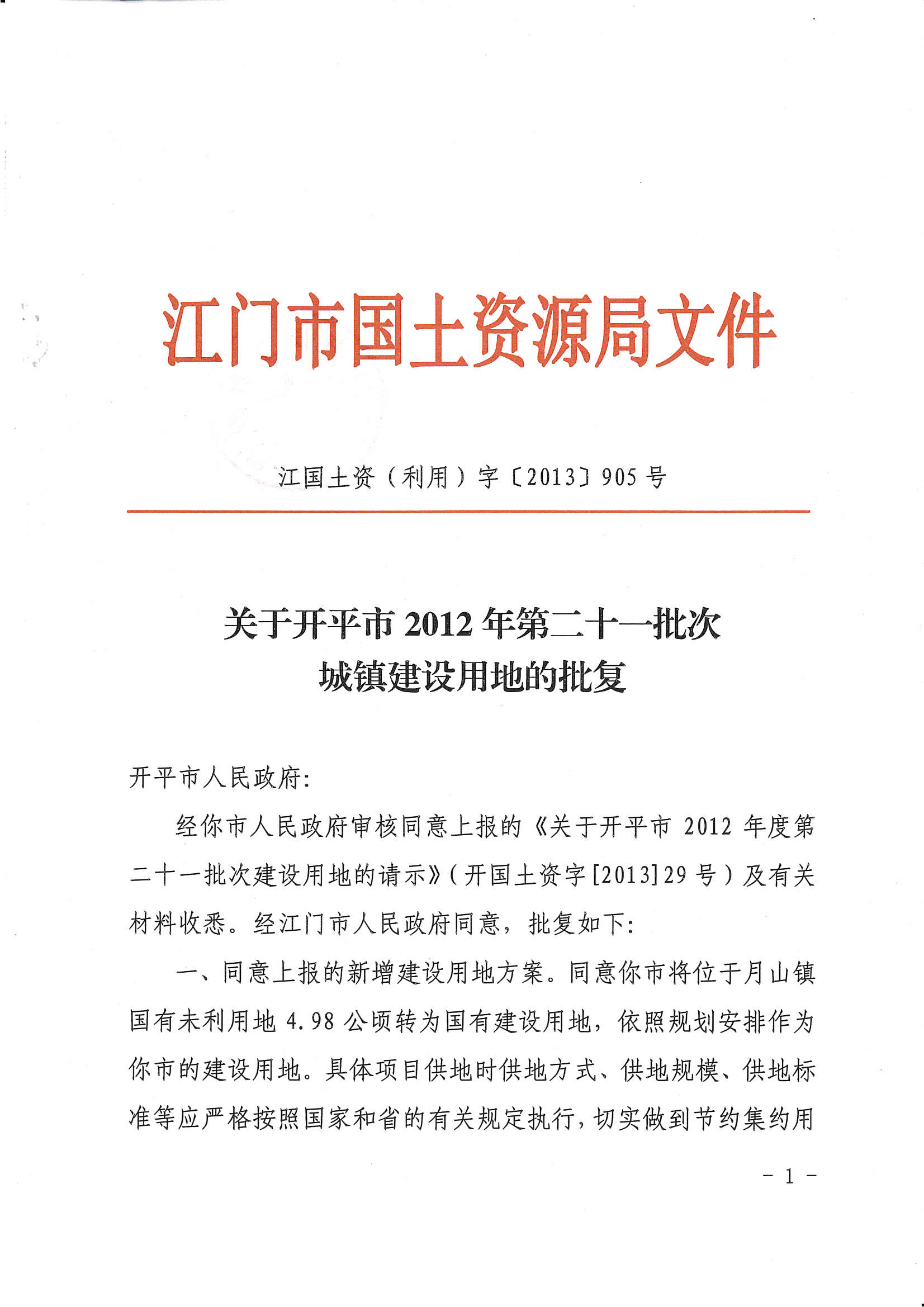 海棠直播 2012年度第二十一批次城镇建设用地的批复