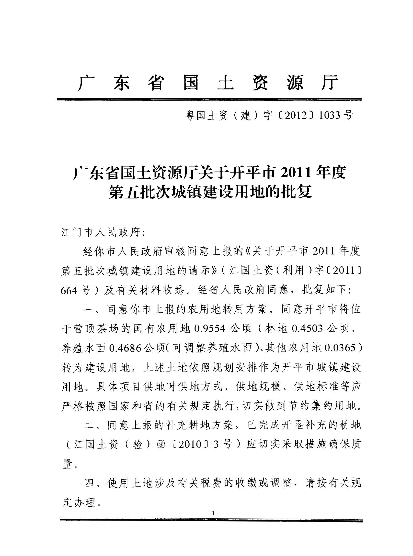 海棠直播 2011年度第五批次城镇建设用地的批复