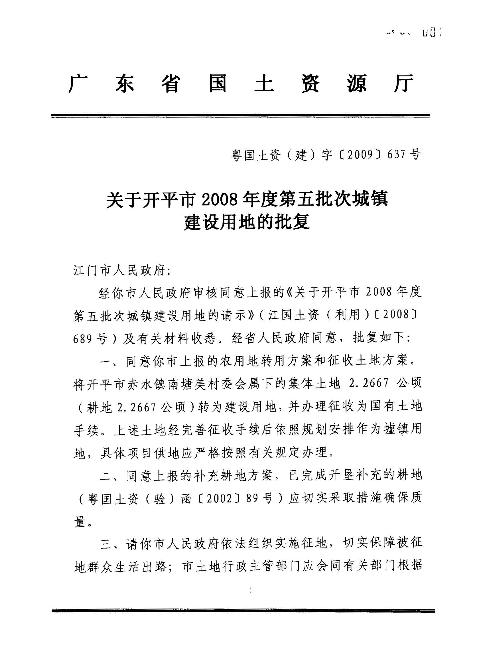 海棠直播 2008年度第五批次城镇建设用地的批复