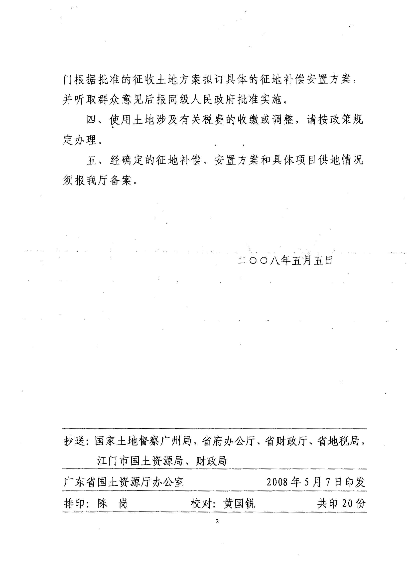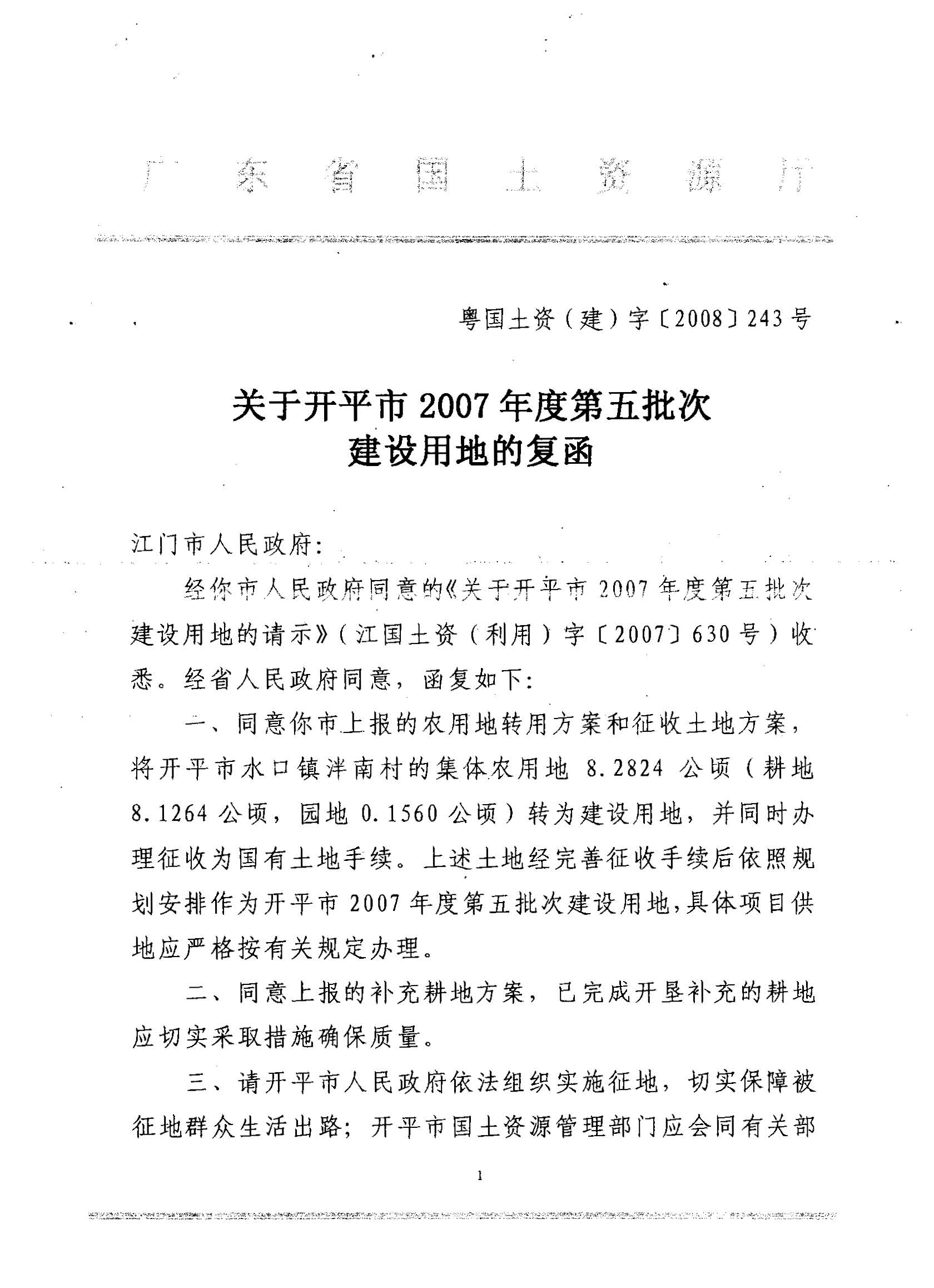 海棠直播 2007年度第五批次建设用地的复函