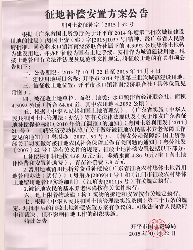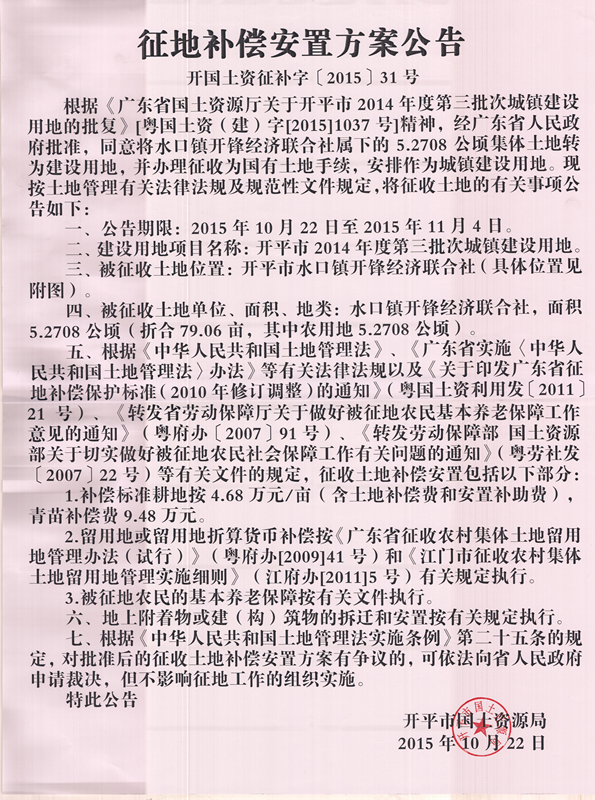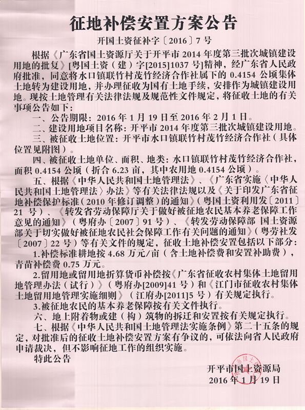 征地补偿安置方案公告