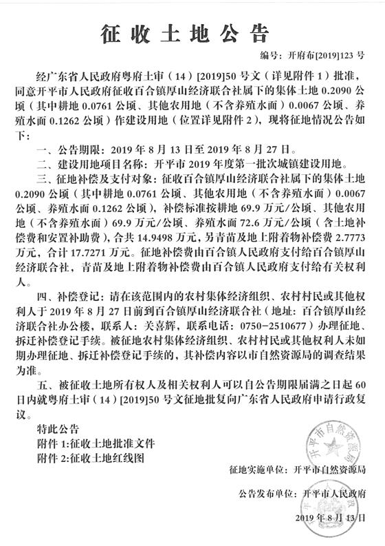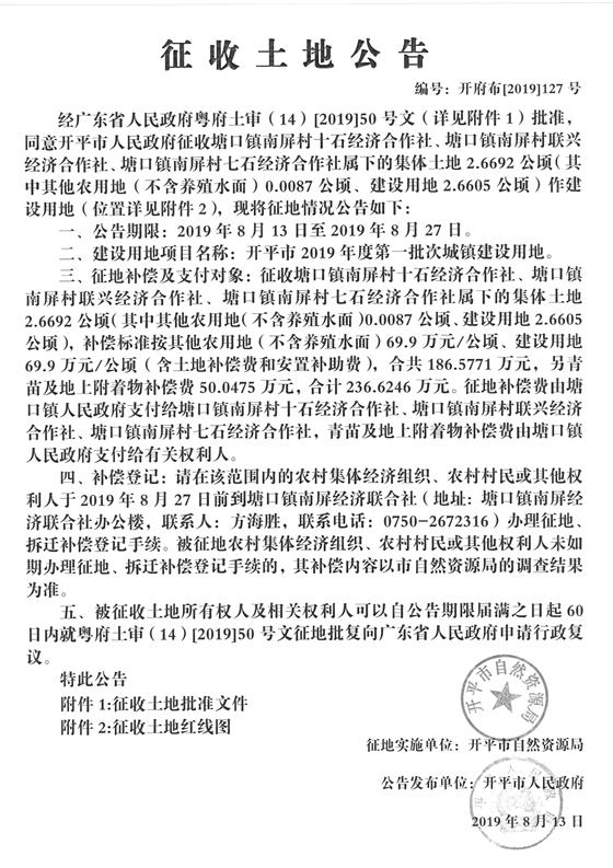 征收土地公告(海棠直播 2019年度第一批次城镇建设用地)2