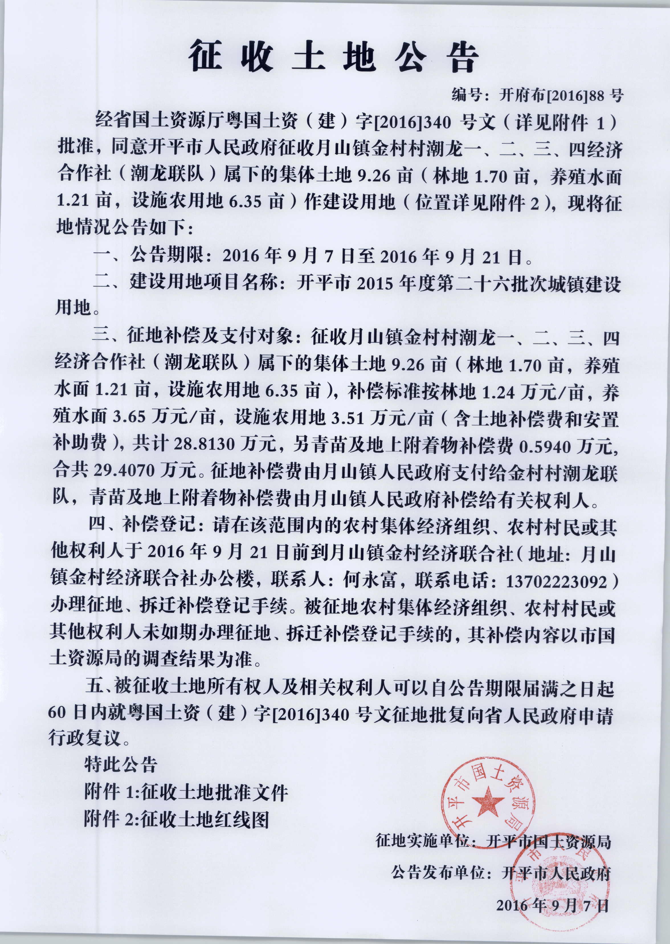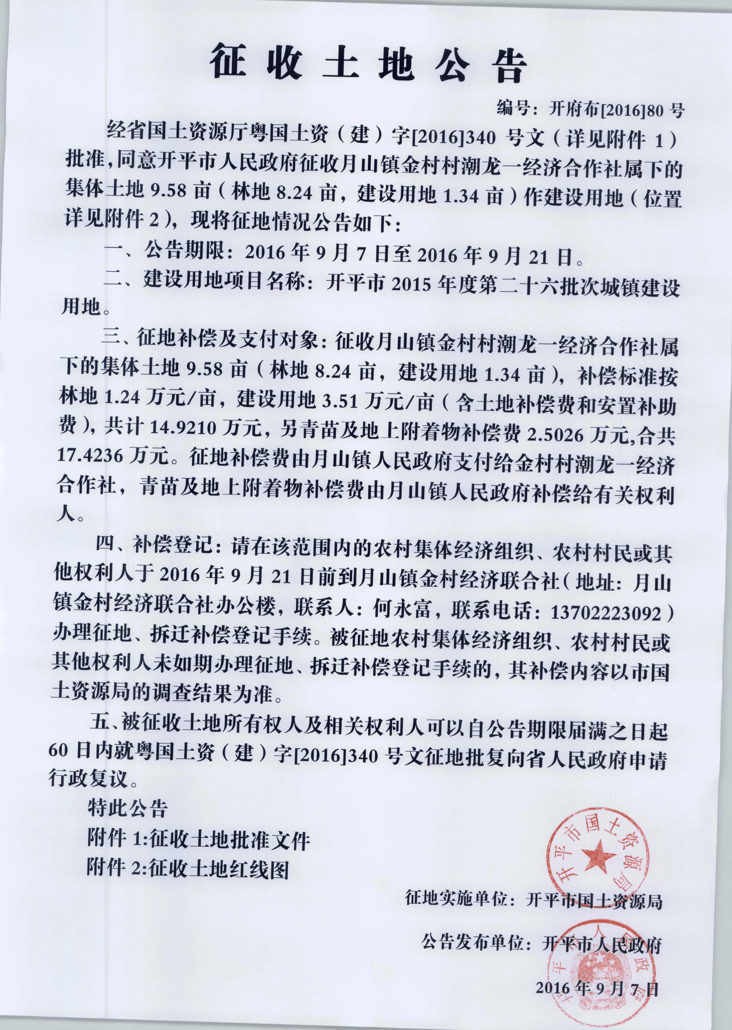 征收土地公告