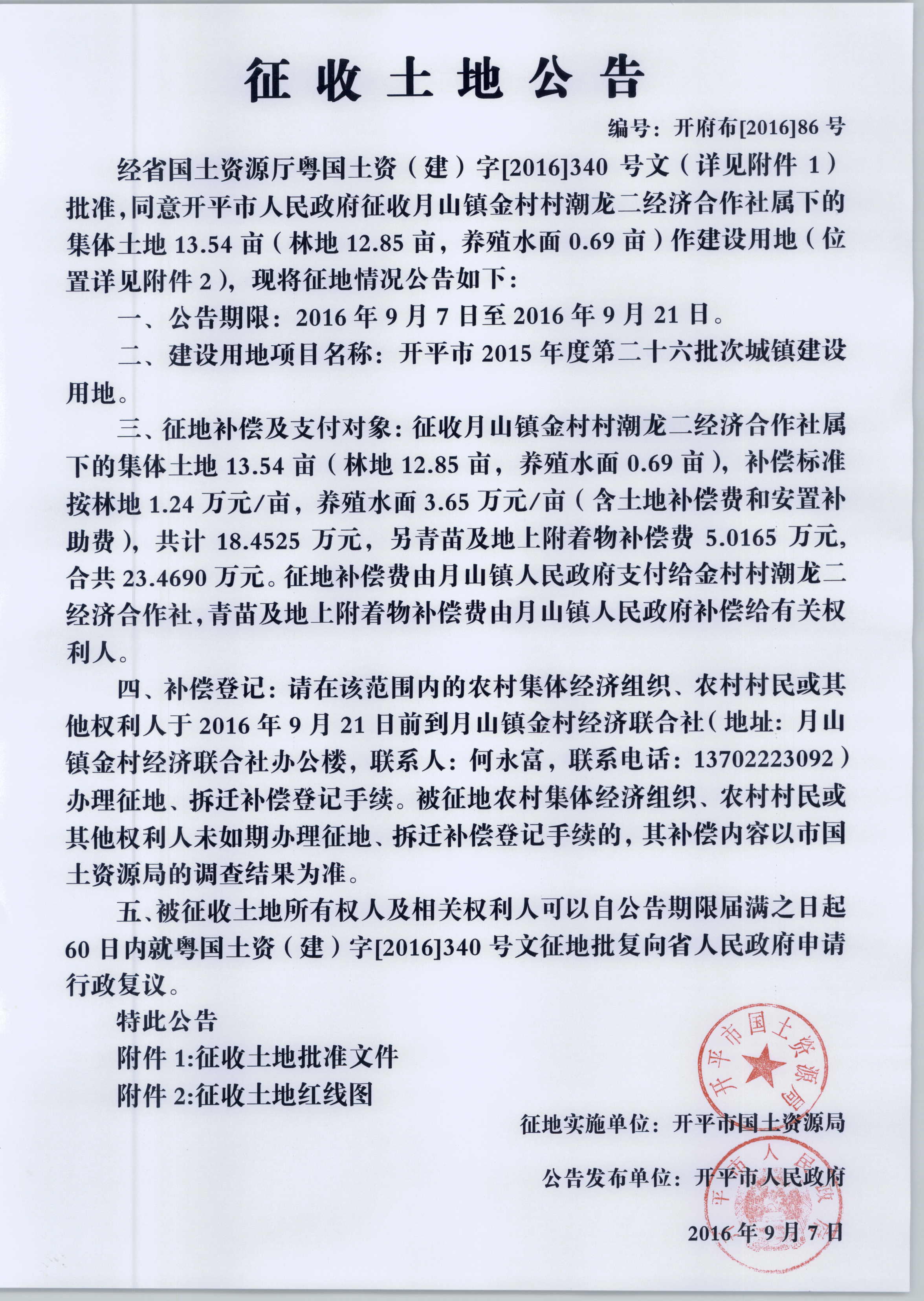 征收土地公告(海棠直播 2015年度第二十六批次城镇建设用地)