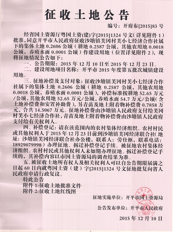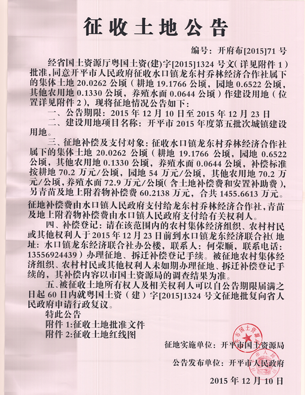 征收土地公告