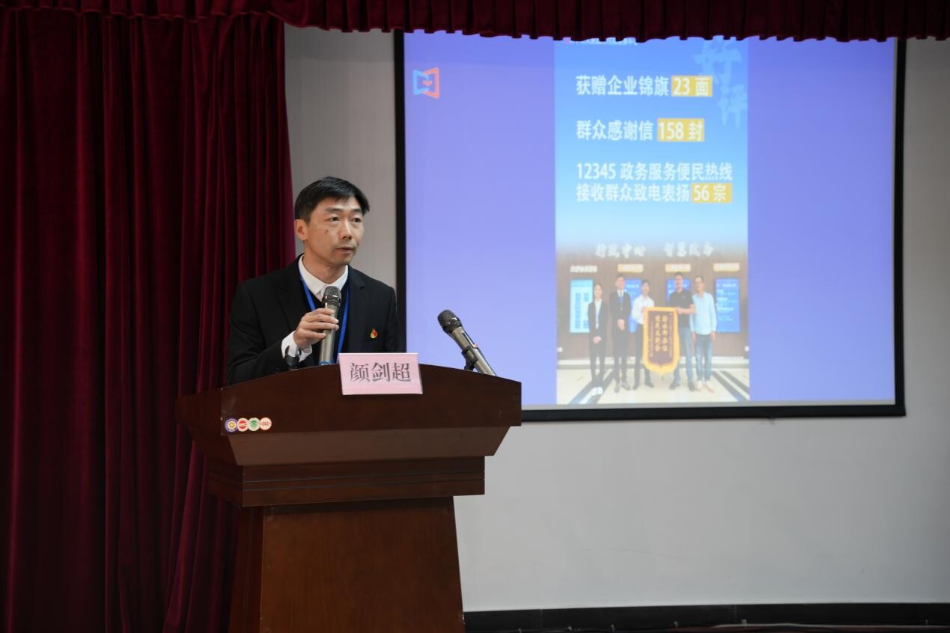 随后,由市政数局党组成员、行政服务中心主任颜剑超作出年度总结。他指出,在过去一年,市行政服务中心紧紧围绕市委市政府“狠抓落实年”的工作任务部署,聚焦企业群众办事难、办事慢等痛点堵点问题,强化党建引领,深化改革行动部署,完善大厅设施,树立我市政务创新服务品牌。