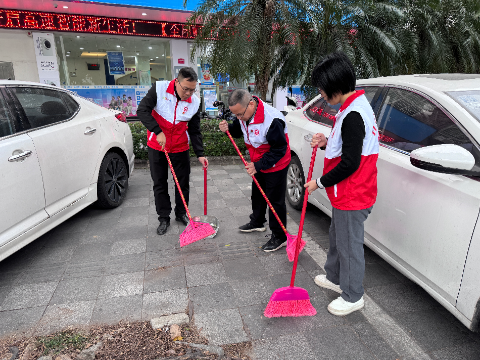为积极响应国家关于秋冬季爱国卫生运动的号召,充分发挥党组织的战斗堡垒作用和党员的先锋模范作用,营造干净整洁、规范有序的人居环境,12月25日下午,市政务和数据局机关党支部携手公共资源交易中心党支部联合开展爱国卫生志愿服务主题党日活动。 活动当天,党员志愿者们身着志愿服务服装,手持扫帚、垃圾袋等工具,准时集合在市行政中心外围的道路上。在领导班子的带领下,党员干部迅速投入到清扫工作中,他们分工合作,有的负责清扫路面垃圾,有的则专注于清理绿化带内的枯枝落叶和废弃物。 在党员志愿者们的共同努力下,道路焕然一新,路面干净整洁,绿化带内的垃圾也得到了有效清理。此次活动不仅提升了市行政中心的周边环境质量,更是增强了党员们的服务意识和团队协作精神,以实际行动践行了“我为群众办实事”的初心和使命,为市民群众创造了一个更加整洁、健康的生活环境。