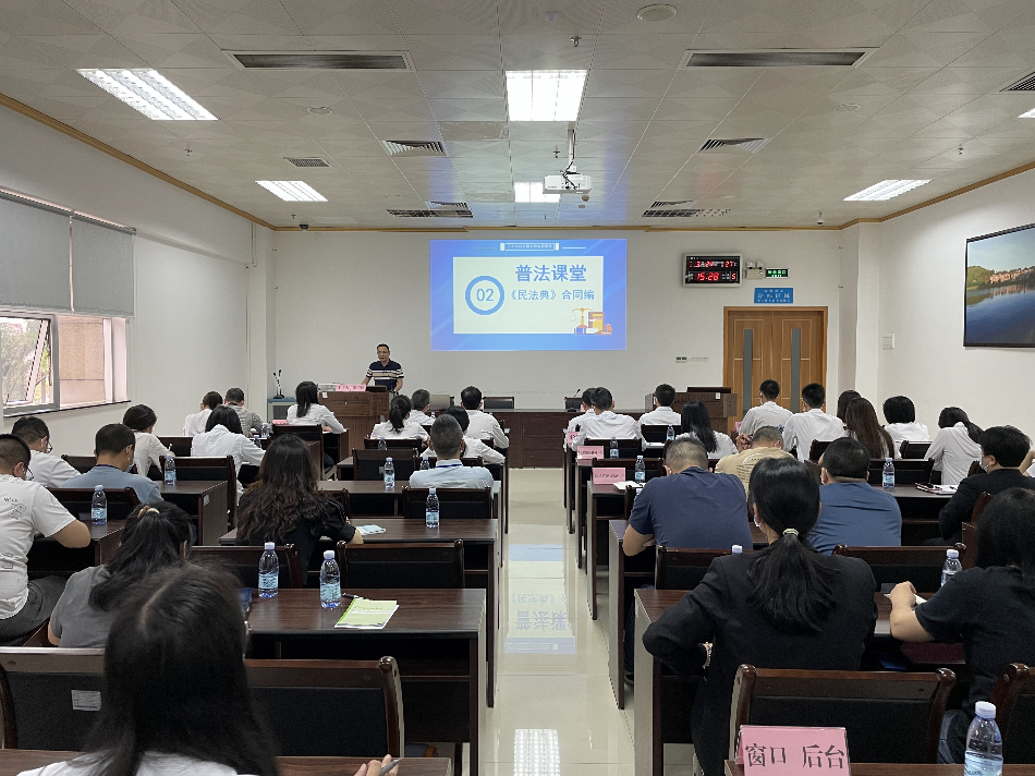法律讲座邀请了广东星辉律师事务所张仕权律师作法治专题授课。张仕权律师围绕习近平法治思想、《中华人民共和国民法典》(合同编)、《中华人民共和国妇女权益保障法》以及《广东省公共资源交易监督管理暂行办法》四个专题,进行深入浅出、全面细致的分析讲解,并通过列举情景案例,进一步加深干部职工对法律知识的理解,提高学法守法用法的意识和能力,干部职工纷纷表示受益匪浅