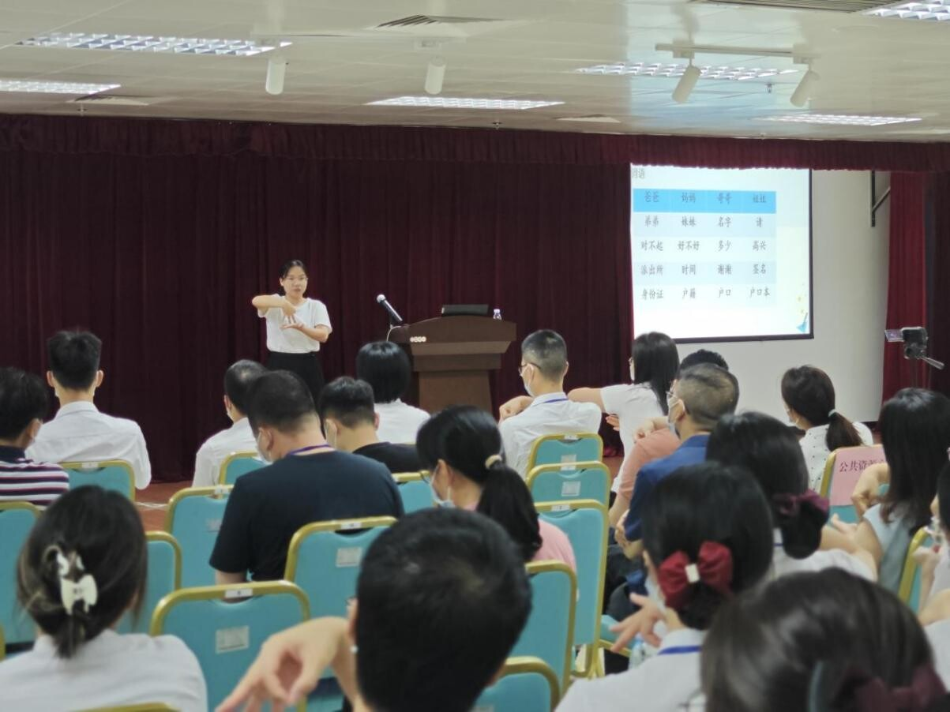 特殊教育学校余扬君老师通过现场教学、实操练习、现场抽查等方式,重点围绕政务服务类等方面用语开展手语教学,由浅入深,帮助学员掌握日常政务服务手语交流技巧。 通过此次培训,学员不仅提升了应对突发意外伤害的紧急救援能力,更掌握了与听障人士交流的基本手语,提升自身手语沟通能力。接下来,市行政服务中心将以创建“广东省政务服务标杆大厅”为目标,打造适老化、适残化便民服务大厅,全力配合我市文明城市创建工作,让政务服务更有温度和深度。