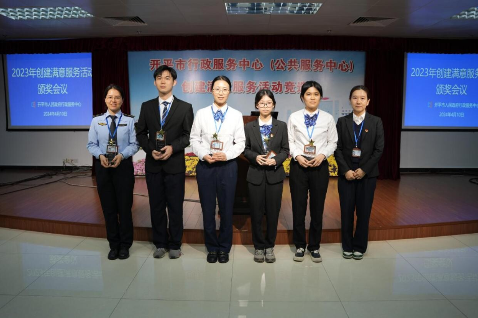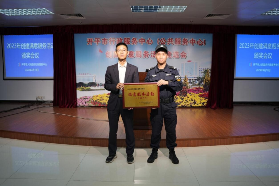 行政服务中心召开省政务服务技能大赛动员及2023年度创建满意服务活动表彰大会,市政务服务数据管理局主要领导,行政服务中心全体职工以及中心服务窗口,审办后台,服务之星代表参加了此次大会。 会议首先传达了第一届全省政务服务技能大赛江门市参赛人员选拔工作要求,详细分析广东省标杆政务服务中心指标数据,为全面推动我市政务服务能力提升,树立政务服务队伍的良好形象,打造良好营商环境添砖加瓦。 随后,进行了2023年度创建满意服务活动表彰。为加强服务窗口、审办后台、服务后勤管理,促进机关作风建设,进一步提升工作人员的政治素质和业务能力,强化责任意识、服务意识、效率意识和创先争优意识,市行政服务中心深入开展创建满意服务活动,并评选出5个“满意服务窗口”、4个“满意审办后台”、1个“满意服务后勤”以及10名“服务之星”。 市政数局党组书记、局长龚伟强同志为5个“满意服务窗口”的获奖代表颁发奖牌 市政数局党组成员、行政服务中心主任颜剑超同志为4个“满意审办后台”获奖代表颁发奖牌 市政数局副局长武胜利同志为“满意服务后勤”代表颁发奖牌 市行政服务中心副主任周建宁同志为“服务之星”获奖者颁发奖杯 市行政服务中心副主任张玉立同志为“服务之星”获奖者颁发奖杯 通过此次会议,全体职工将以先进为榜样,坚持以习近平新时代中国特色社会主义思想为指导,凝心聚力、接续奋斗,积极提升政务服务能力,在全面建设社会主义现代化国家新征程中展现我们政务服务的新担当、新作为。