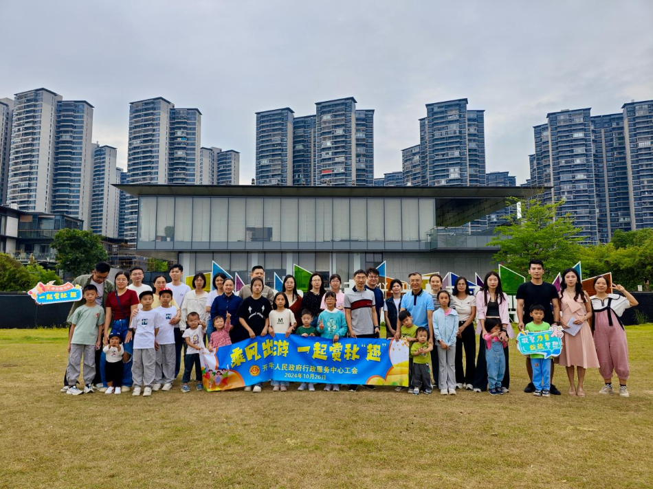 一起赏秋‘趣’”为主题的团建活动,工会职工及其家属参加了活动。 活动首先由市行政服务中心工会主席周建宁同志作代表发言。他总结了今年以来中心工会职工干部们取得的工作成效:获企业赠送锦旗14面,群众感谢信47封,12345政务服务便民热线接收群众致电表扬57宗,同比增长41.67%;大厅投诉89宗,同比下降17.59%,硕果累累。并指出希望通过工会搭建的活动平台,进一步加强职工干部的身心健康交流,倡议全体职工积极参与到健康单位建设中来,团结书写政务服务队伍的精彩篇章。 活动现场安排了“赶鸡入笼”和“二人三足”两个具有趣味性和团队协作性的游戏项目,以游戏赋能健康运动,激发了职工和家属的参与热情,参赛者们以最短的时间、默契的配合,出色完成了各个游戏项目,现场气氛热烈,精彩连连。职工家属称,活动能和爸爸妈妈一起游玩,还认识了许多新朋友,太开心了!活动最后在职工和家属涂鸦风筝的温馨互动中结束,这些五彩斑斓的风筝也成为了秋日里一抹抹靓丽的色彩。 本次职工、家属与工会的“双向奔赴”之约,充分发挥了工会的桥梁和纽带作用,不仅愉悦职工和家属的身心,还进一步提高了职工干部的团队意识和集体荣誉感,展现了凝心聚力、奋勇争先的精神状态和朝气活力的身体状态,为培养一支健康优秀的政务服务队伍添薪助力,也为开平创建健康支持性环境加能蓄势。职工干部纷纷表示,自己在秋日中感受到了游戏的乐趣和团建的魅力,收获满满,将会把团建活动上的收获转化为做好本职工作的强大动能。