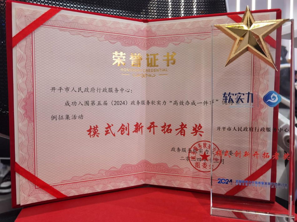 连续三年获评全国优秀案例!海棠直播 行政服务中心荣获第五届全国政务服务软实力“模式创新开拓者奖”
