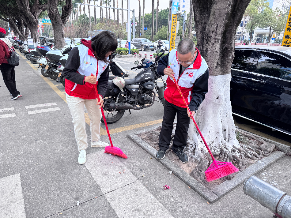 活动当天,党员志愿者们身着志愿服务服装,手持扫帚、垃圾袋等工具,准时集合在市行政中心外围的道路上。在领导班子的带领下,党员干部迅速投入到清扫工作中,他们分工合作,有的负责清扫路面垃圾,有的则专注于清理绿化带内的枯枝落叶和废弃物。