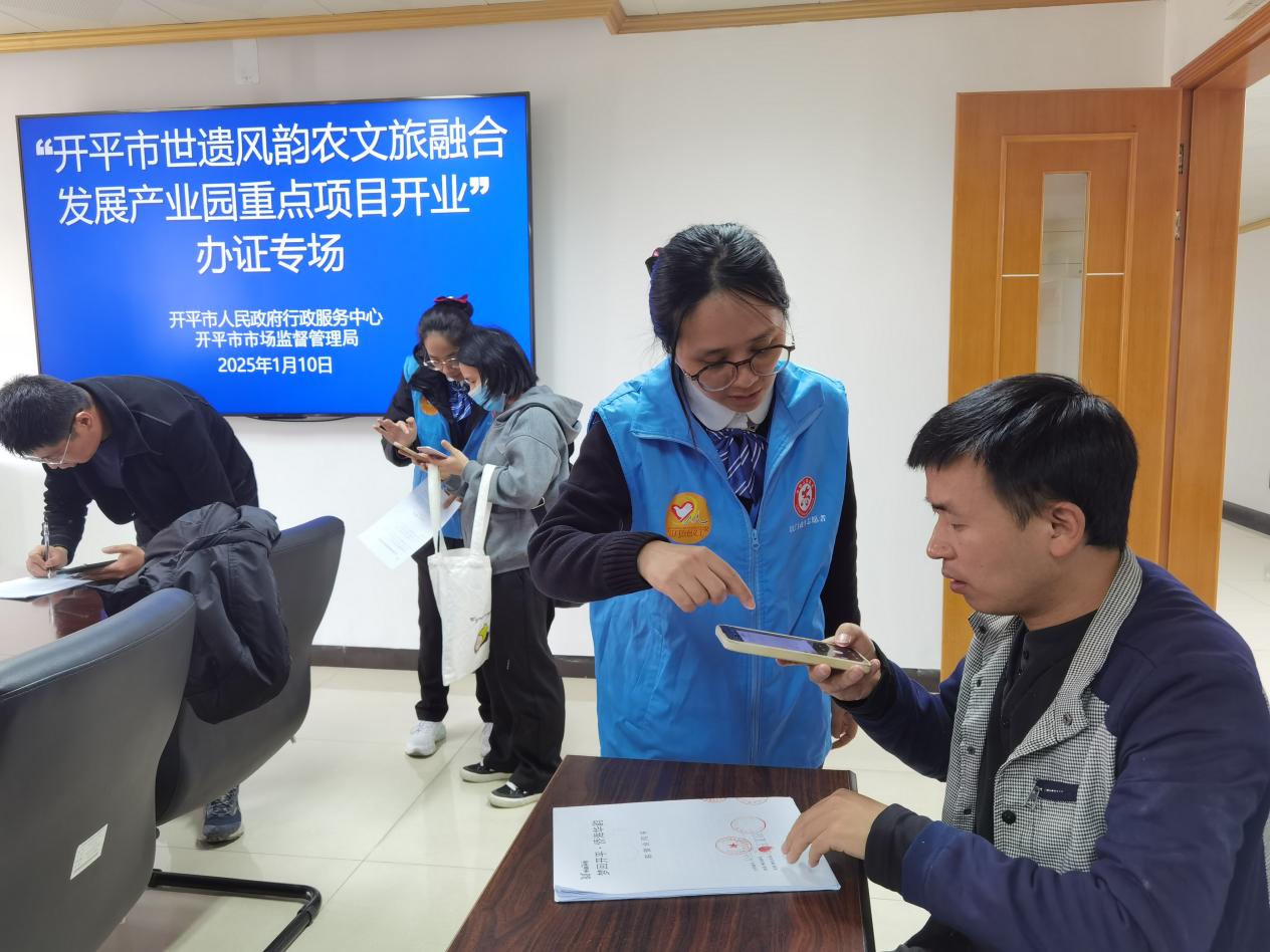 为满足大量企业集中办理营业执照的需求,20251月,中心联合市监局组建政务服务志愿服务队,开设办证专场在开业前一天服务队依旧坚守岗位争分夺秒开展审批工作最终顺利在开业前为企业办理好营业执照有效保障各企业按时开业,赢得企业的高度赞誉。